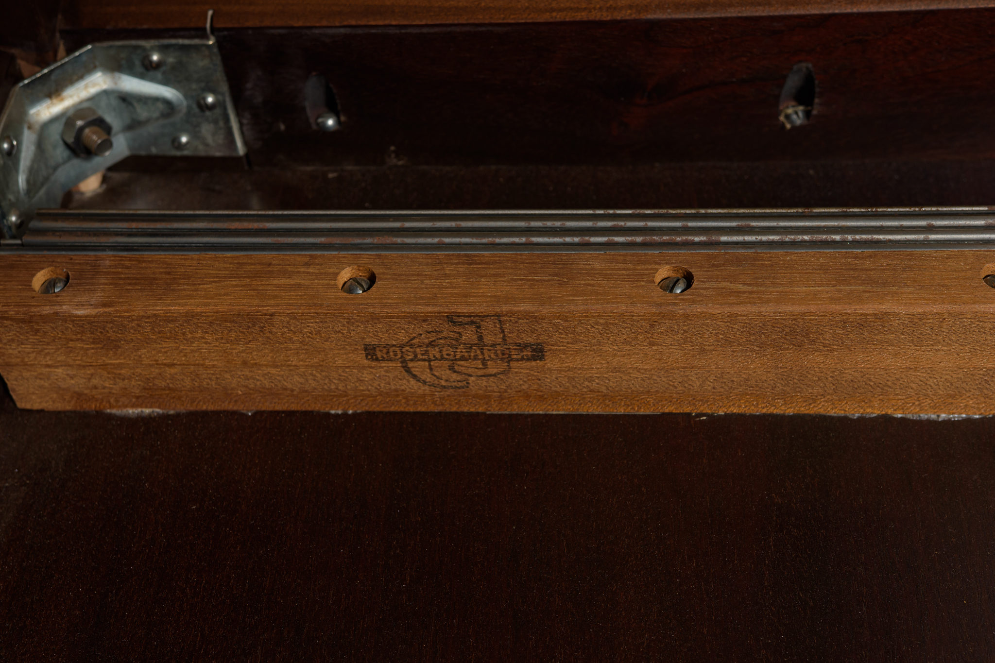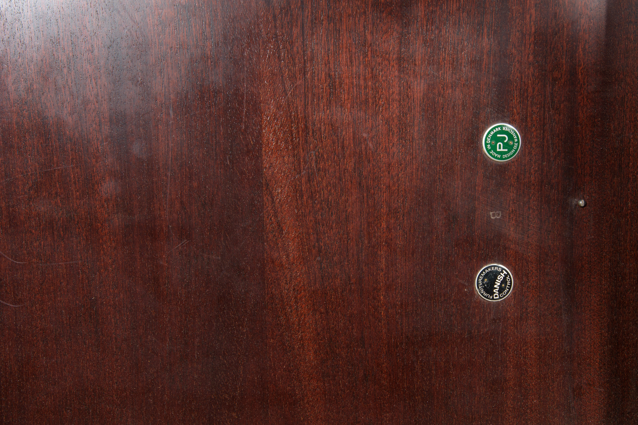 The Table Rungstedlund was designed by Ole Wanscher and manufactured in the 1960s and 1970s by Poul Jeppesen in St. Heddinge in Denmark. Completely restored. The table is made of mahogany wood. The wood elements have been cleaned from the old surface and painted with an rosewood colored stain and finished with a strong semi-gloss lacquer. The table extends with two extensions from 146 to 211 to 276 cm.