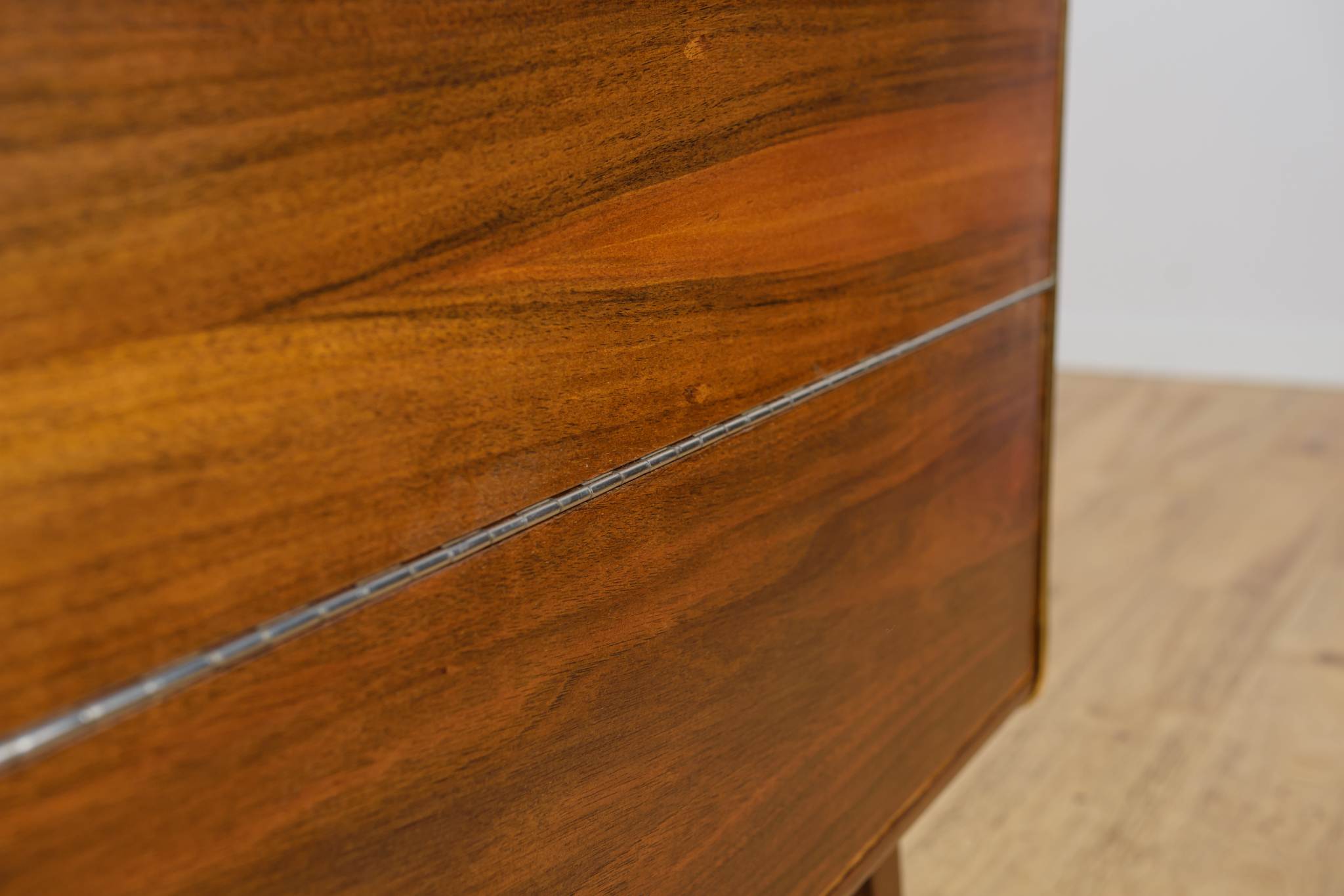 The furniture was designed by Bohumil Landsman in the 1960s. It was produced by the Jitona Soběslav furniture factory in the Czech Republic. Originally, the piece of furniture was used as a chiffonier. During the renovation, the function of the furniture was changed to an alcohol bar. The bar is made of beech wood, veneered with oak and walnut. The bar has golden, aluminum decorative fittings. The furniture has been completely renovated, cleaned of the old surface, finished with very quality Danish oil. Center finished with strong varnish.The furniture has new a mirror and a black glass inside.