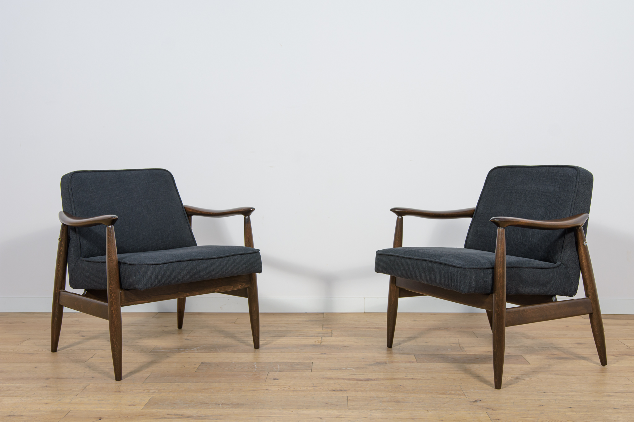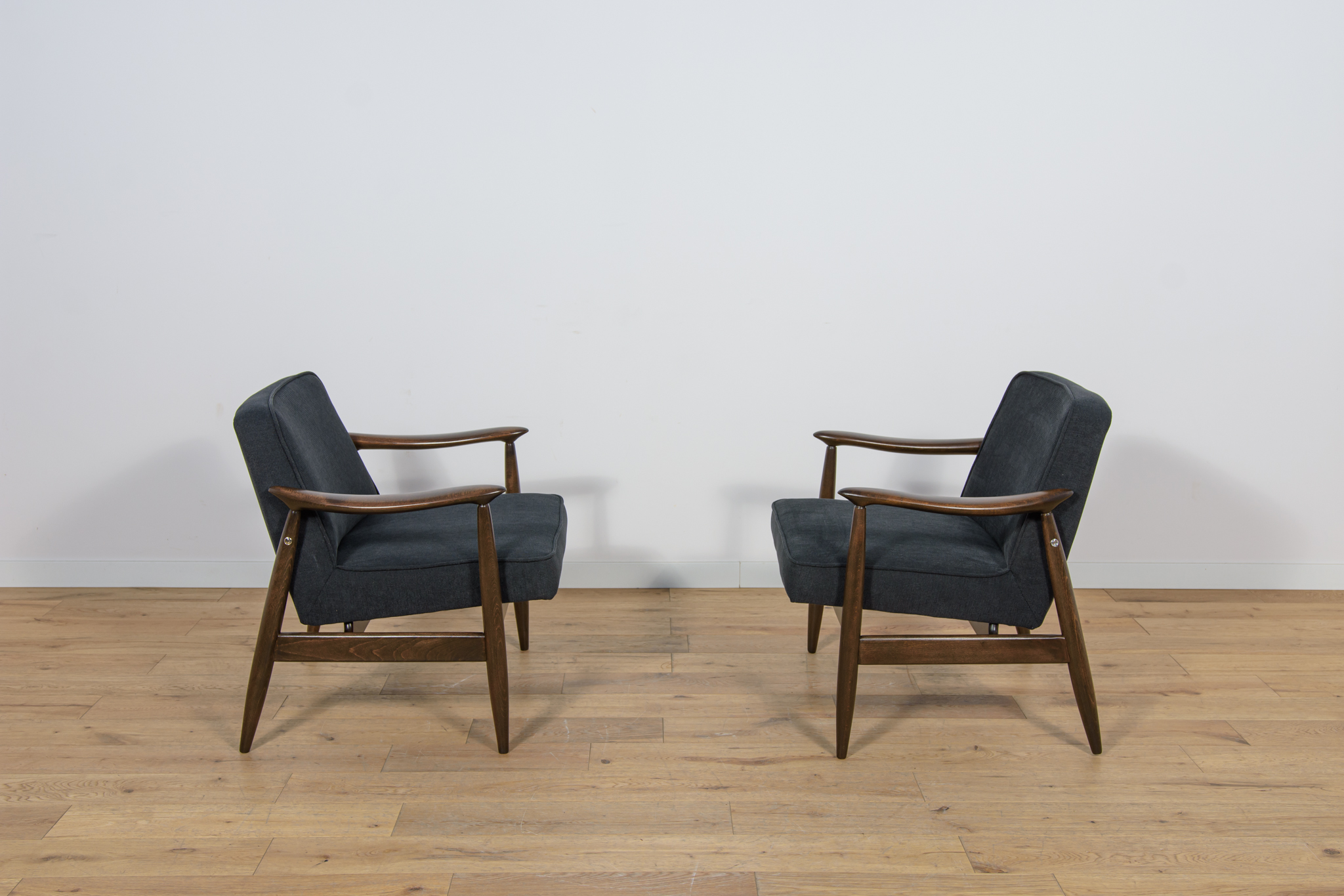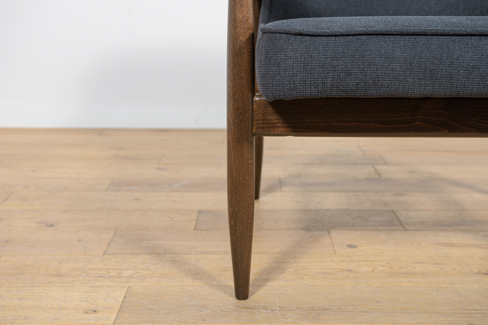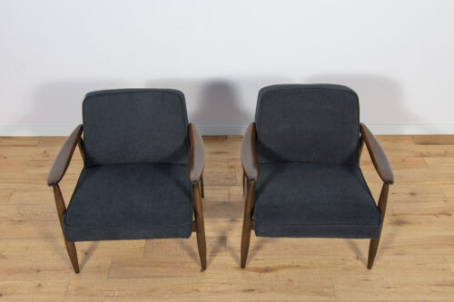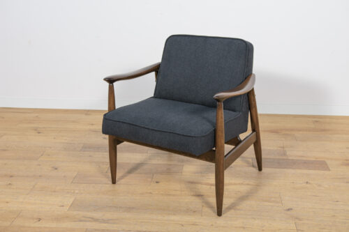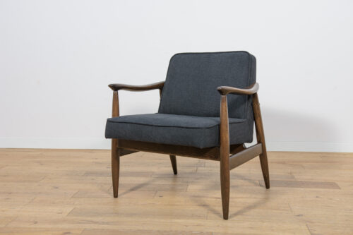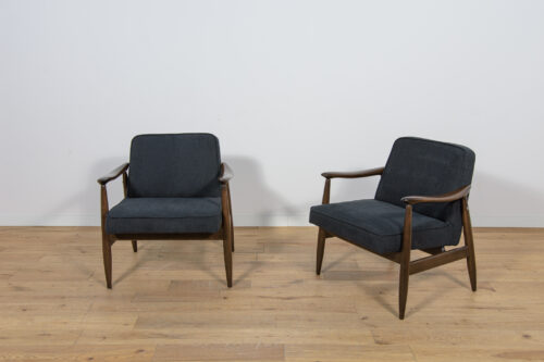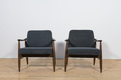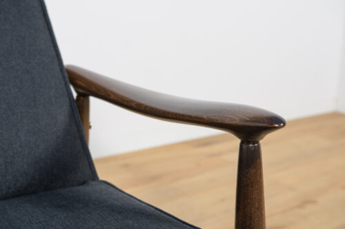 A pair of Polish armchairs produced in Gościcińskie Fabryki Mebli in the early 1960s. This project, due to the specific profile of the armrests, is wrongly attributed to Professor Edmund Homa, but the actual designer was Juliusz Kędziorek.