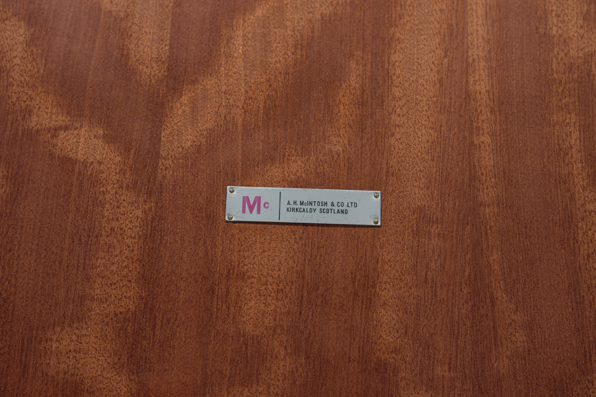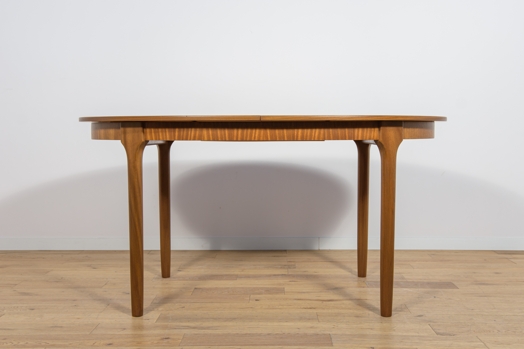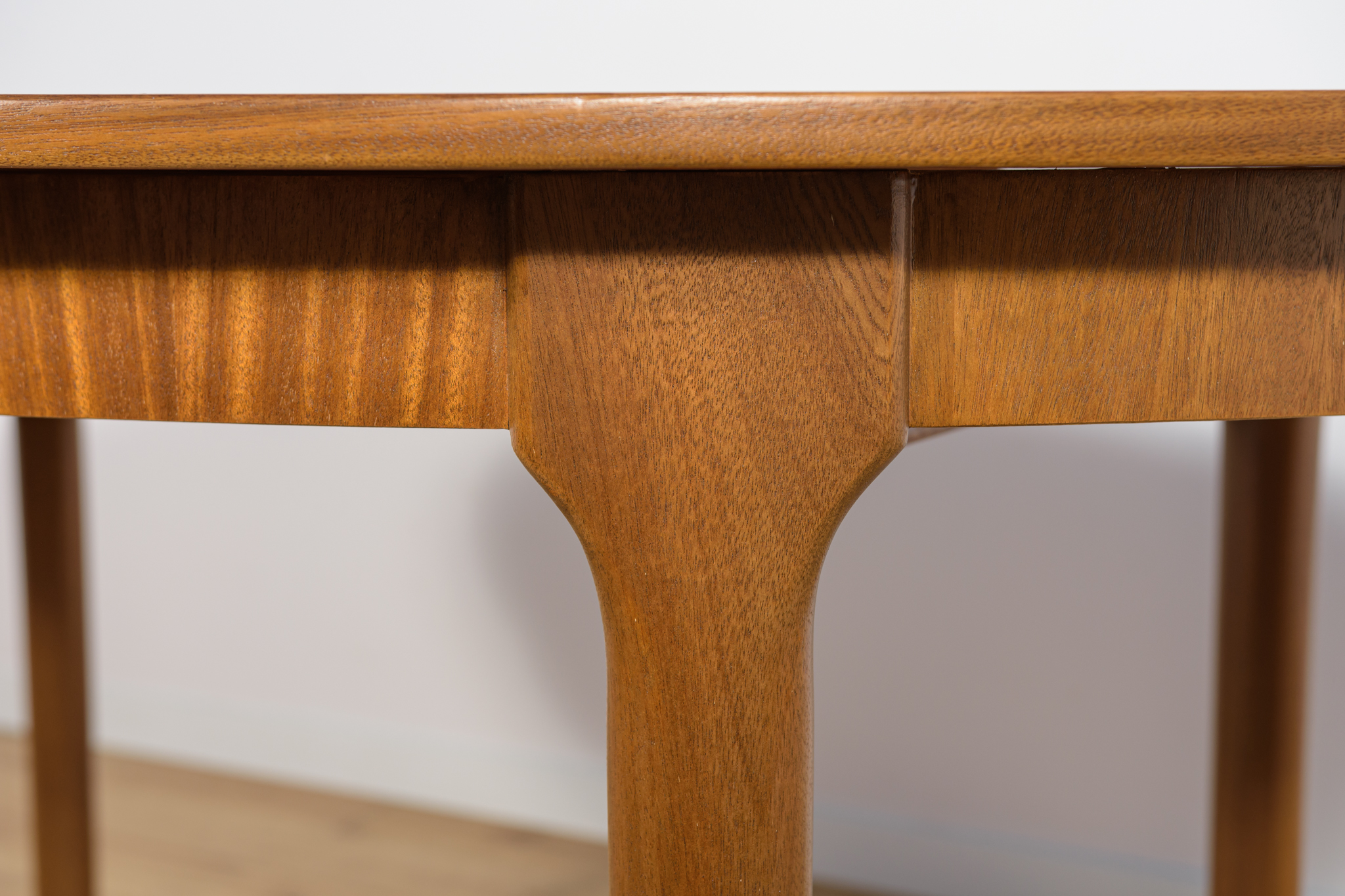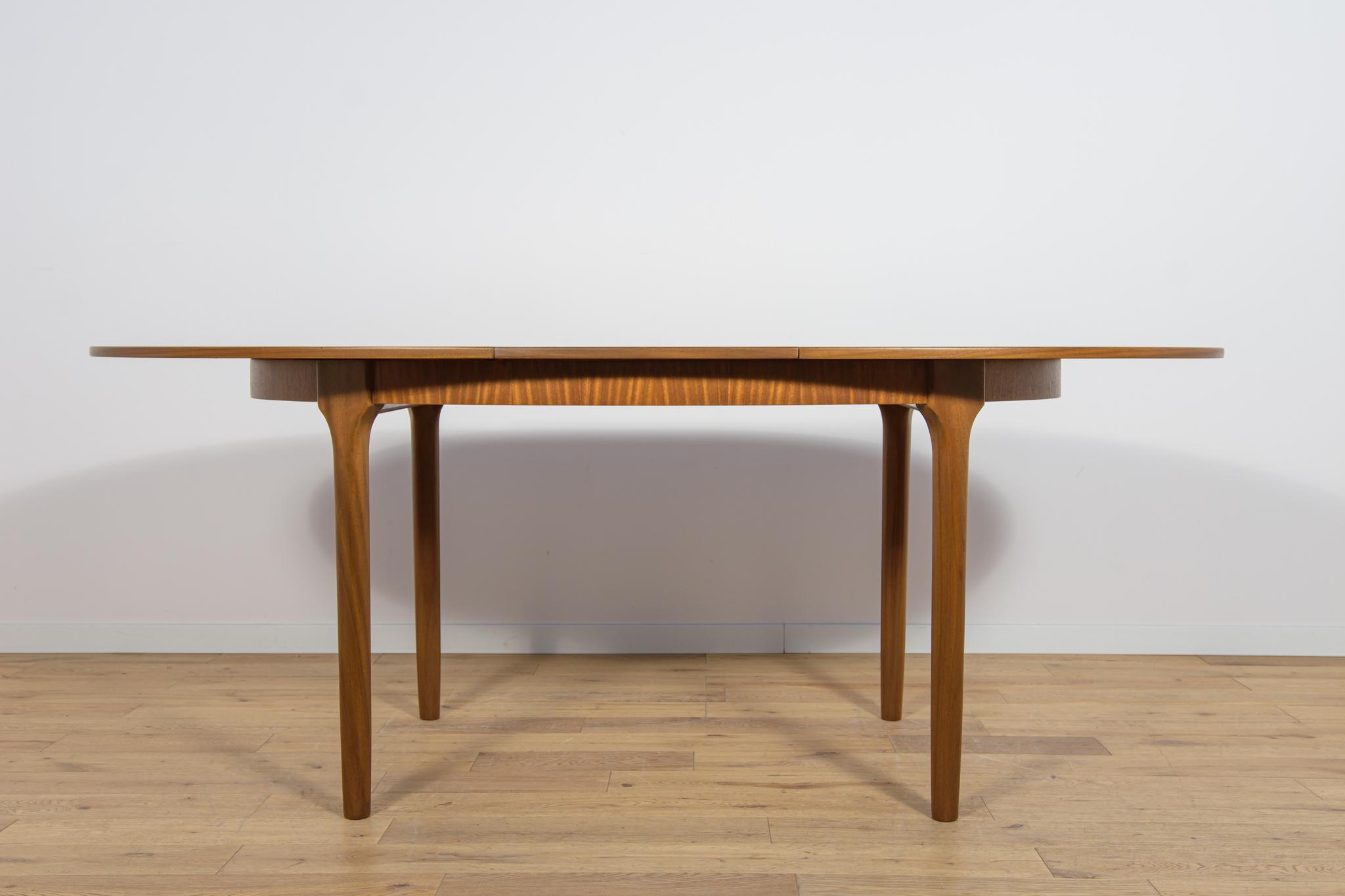 This oval extendable dining table was produced by McIntosh in the 1960s. Teak elements cleaned old surface and painted in an oak stain and finished with strong semi matt lacquer. The table has a mechanism that makes it easier to unfold. The table measures 196 cm long when fully extended.