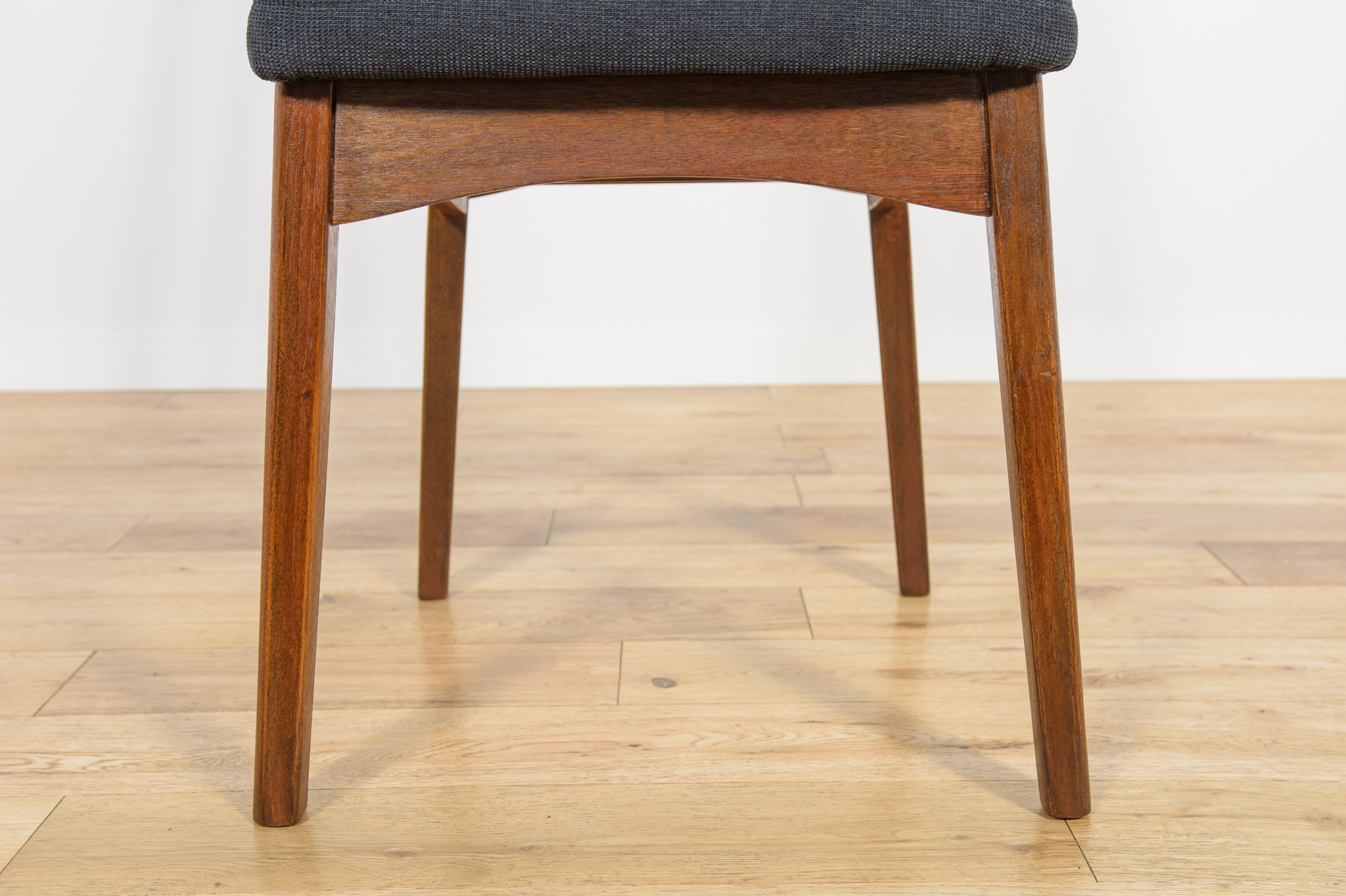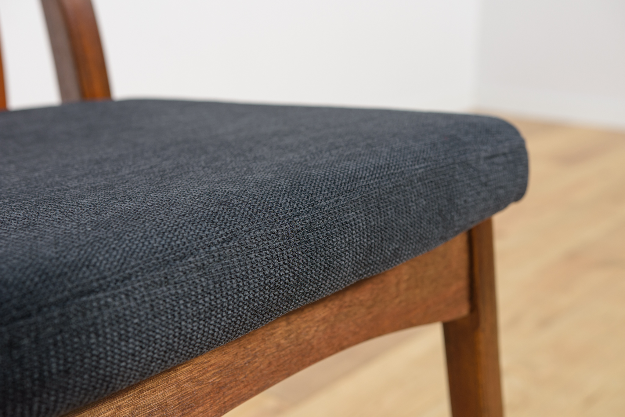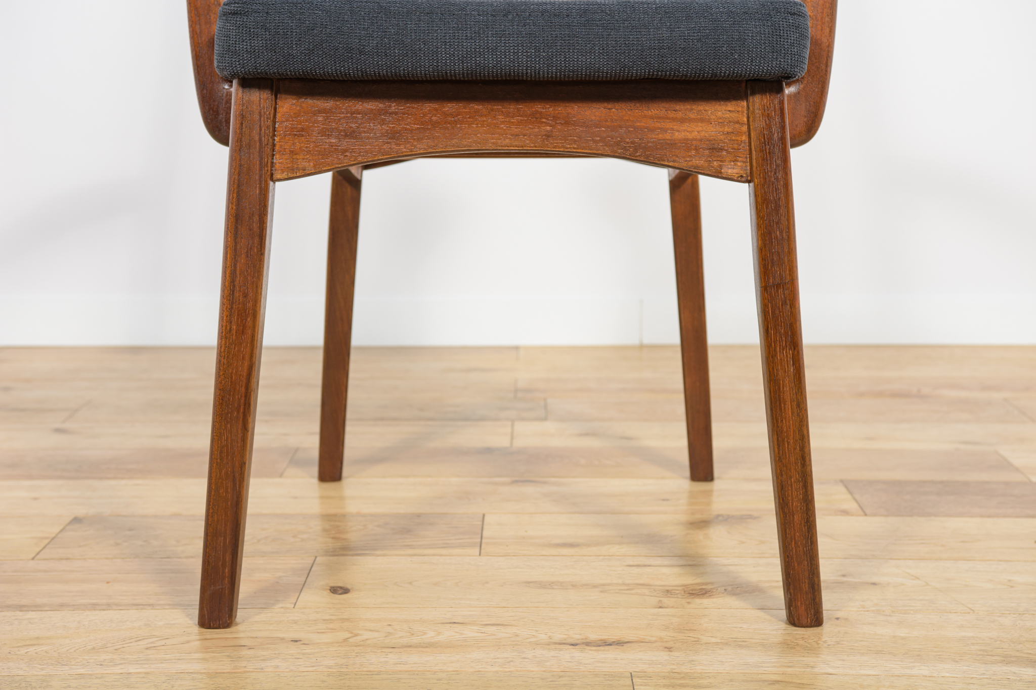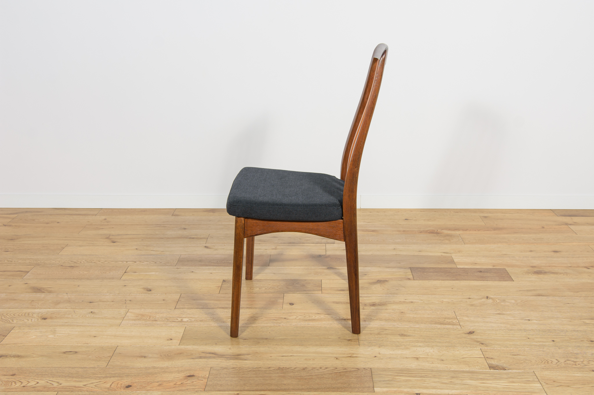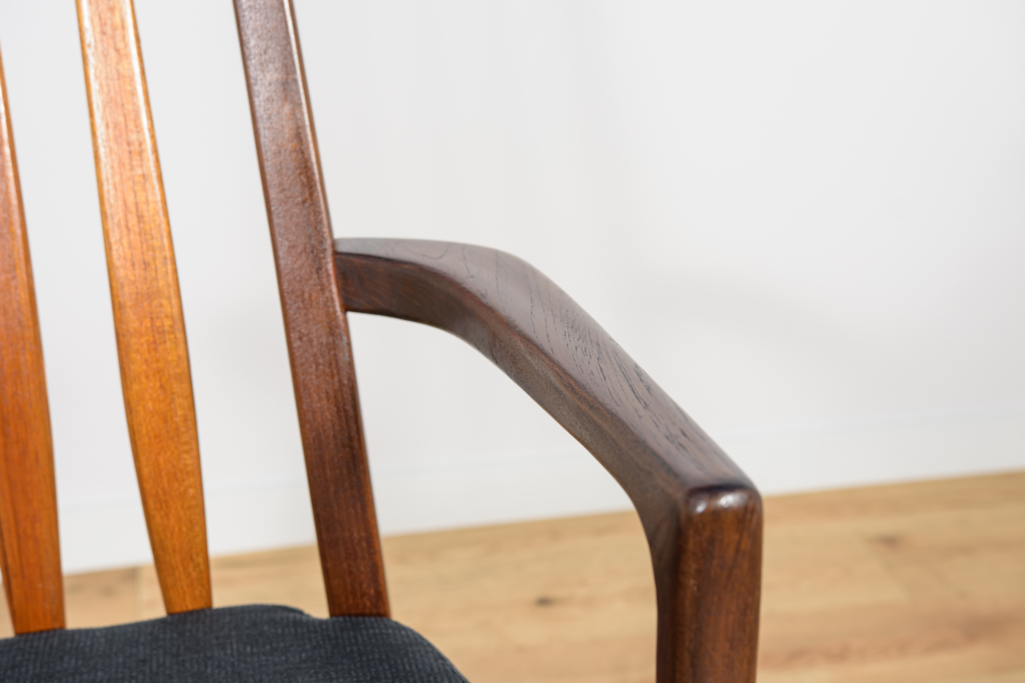 Dining chairs made in United Knigdom the 1960s. . Made from solid teak. Wood elements have been cleaned from the old surface and finished with very quality Danish Oil. The foams have been replaced and covered in black fabric. The set consists of 4 chairs and two armchairs.