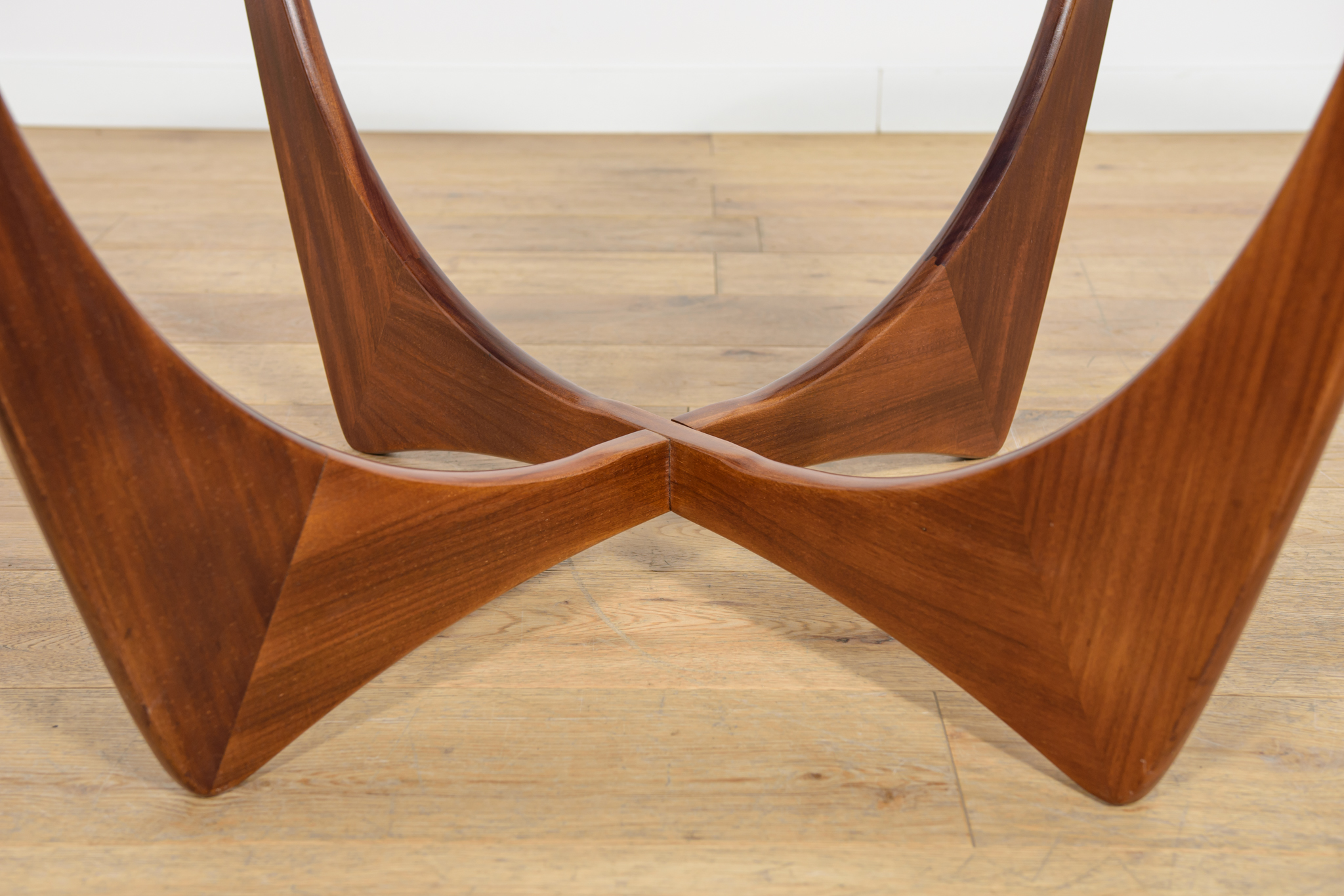 The coffee table was designed by Victor Wilkins for the British manufacturer G-Plan in the 1960s. The solid teak wood has been completely renovated and finished with very quality Danish oil. The glass is tempered, replaced with a new one.