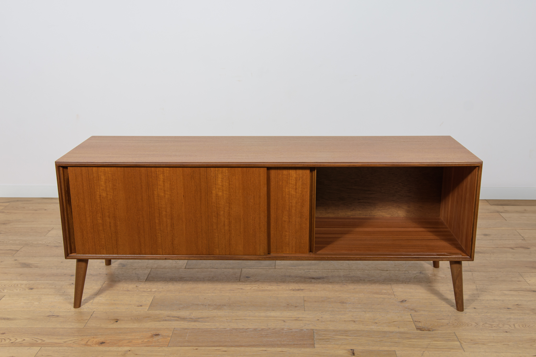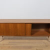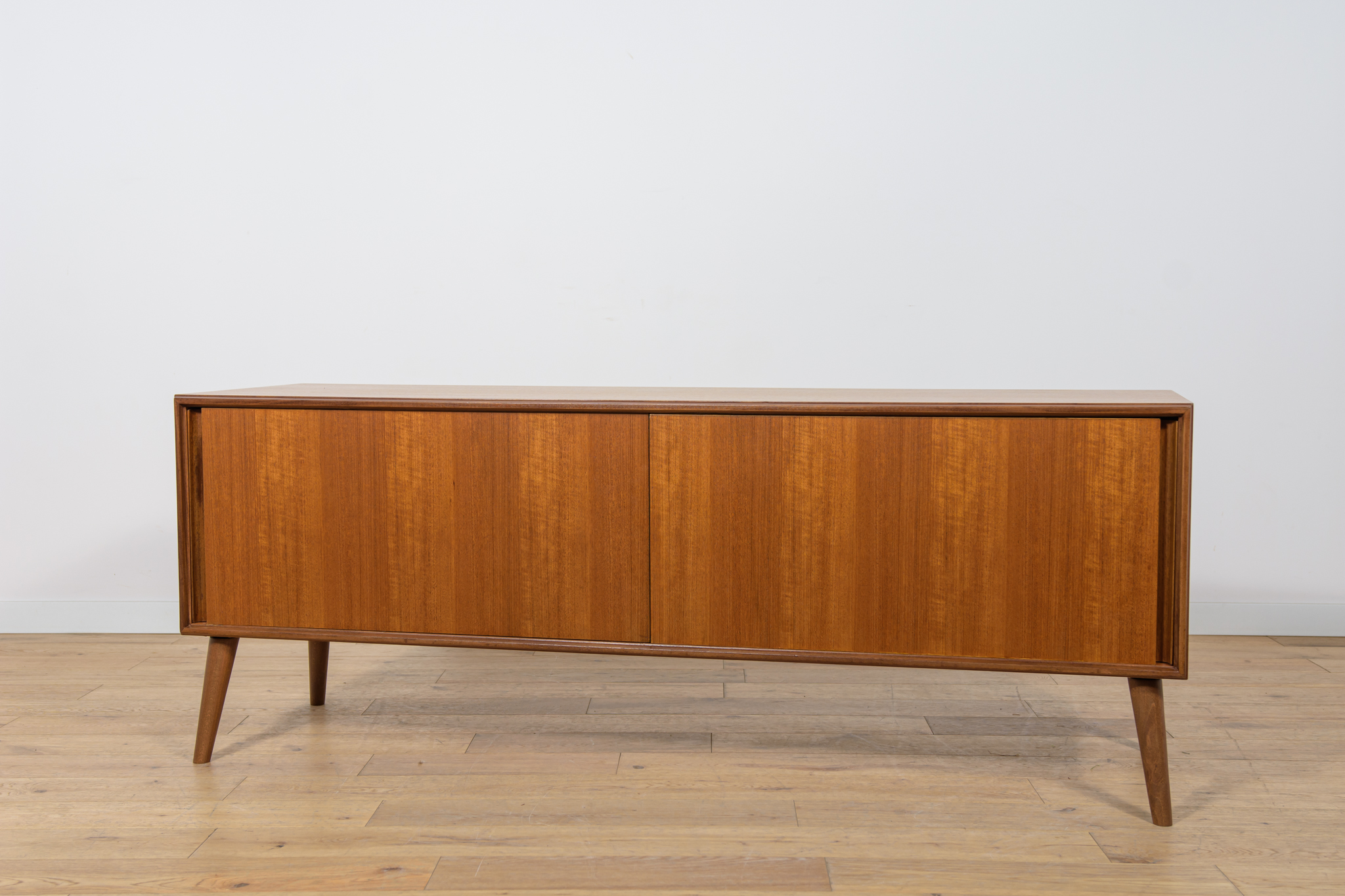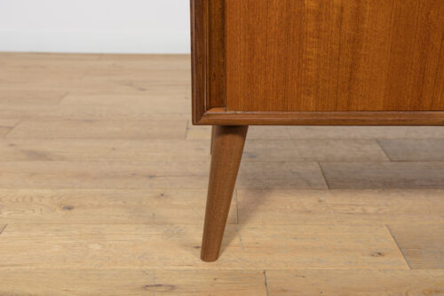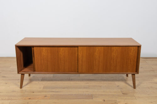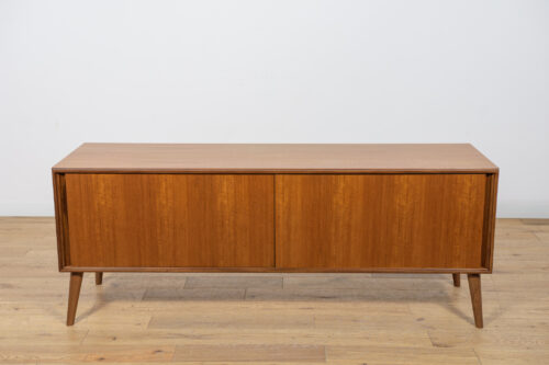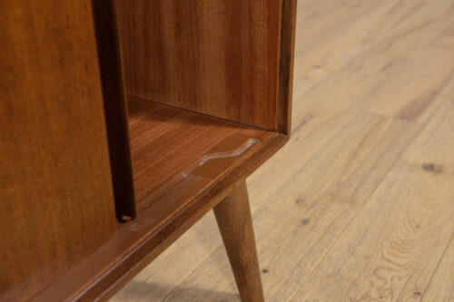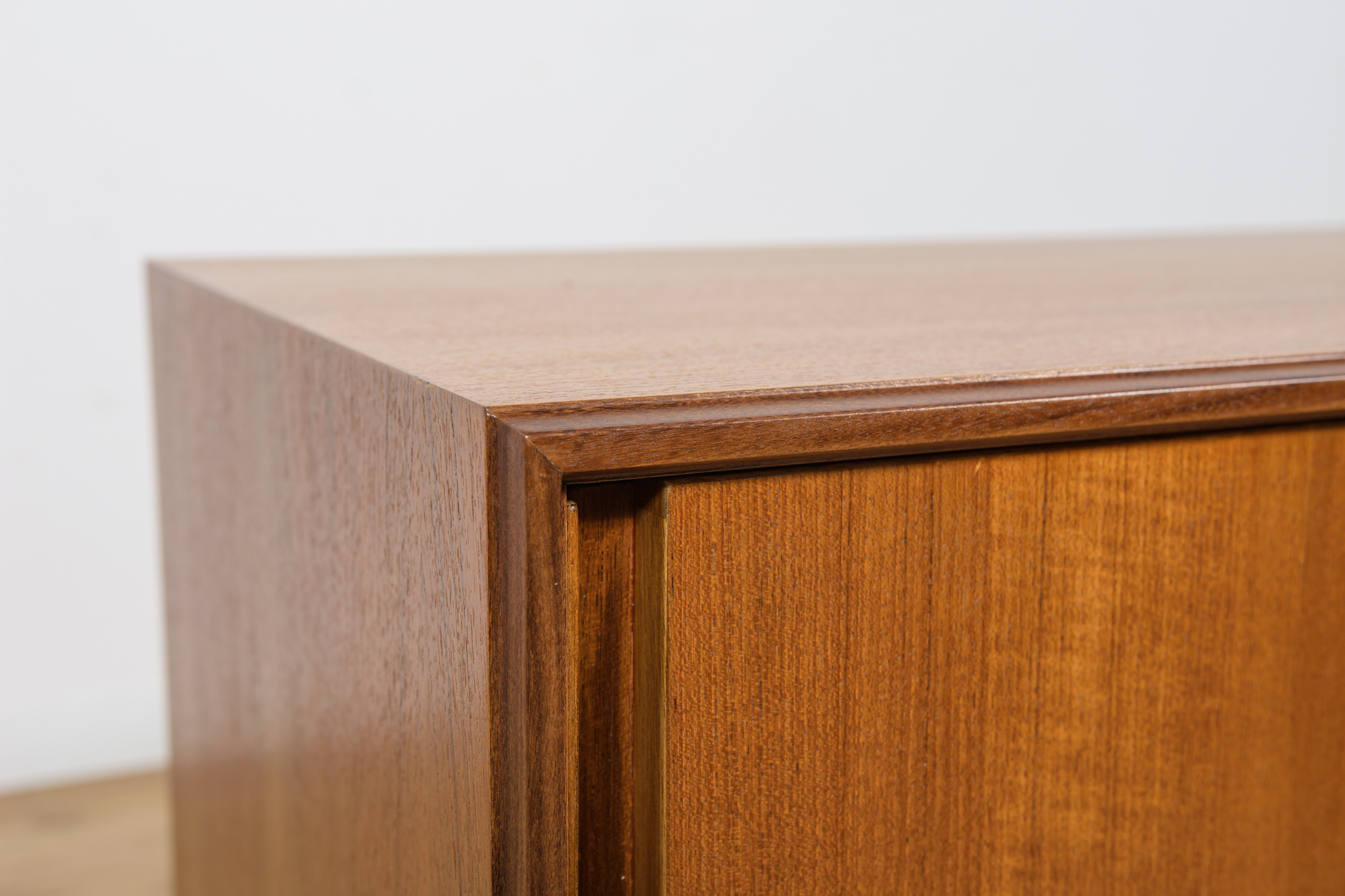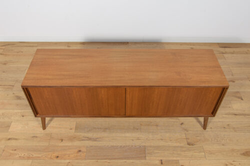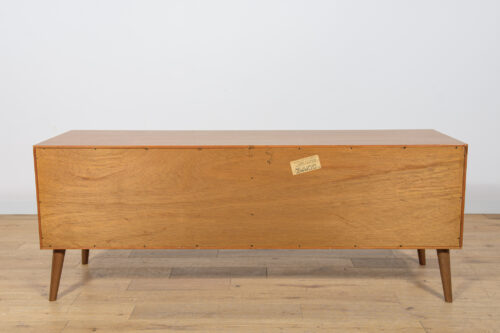 Sideboard wyprodukowany w brytyjskiej manufakturze G-Plan w latach 60. Wykonany z drewna teakowego. Komoda składa się z dwóch przesuwnych drzwi. Całość jest po kompleksowej renowacji stolarskiej. Drewno zostało oczyszczone ze starej powierzchni, barwiony bejcą dębową, wykończona mocnym półmatowym lakierem.