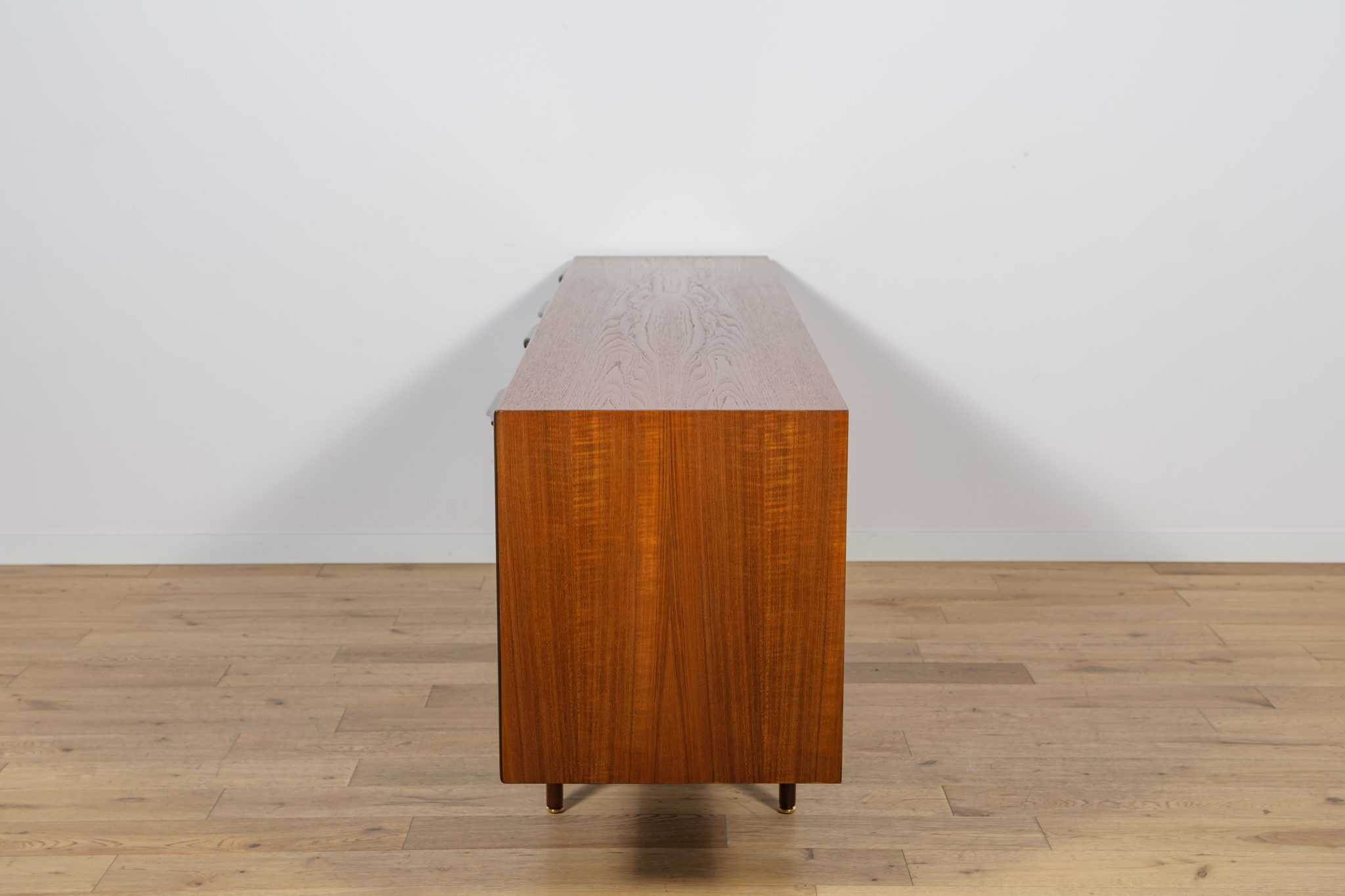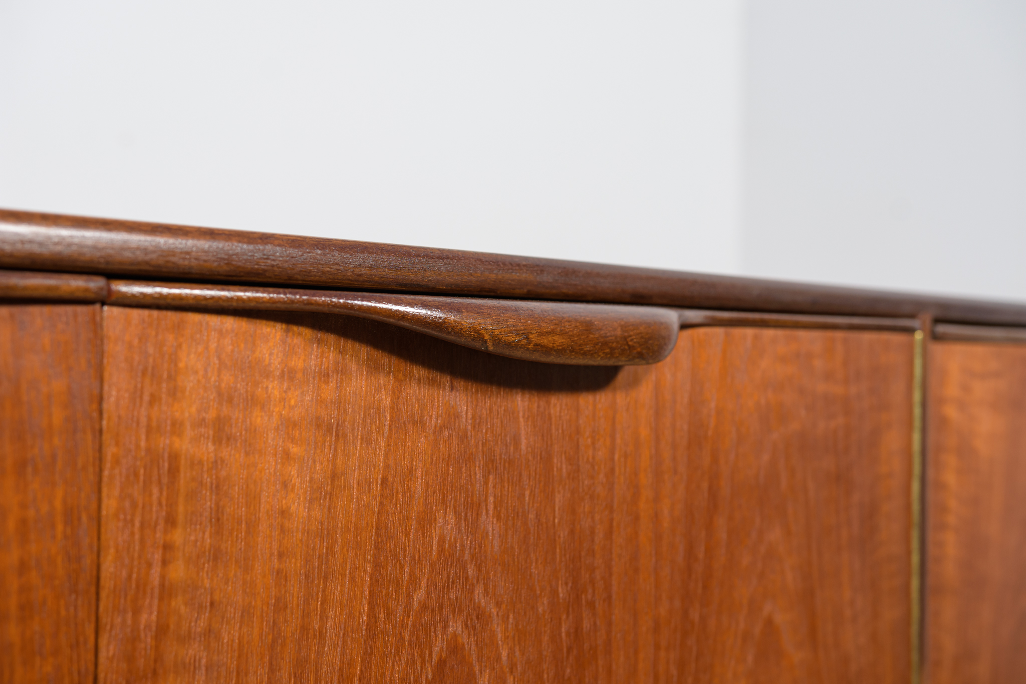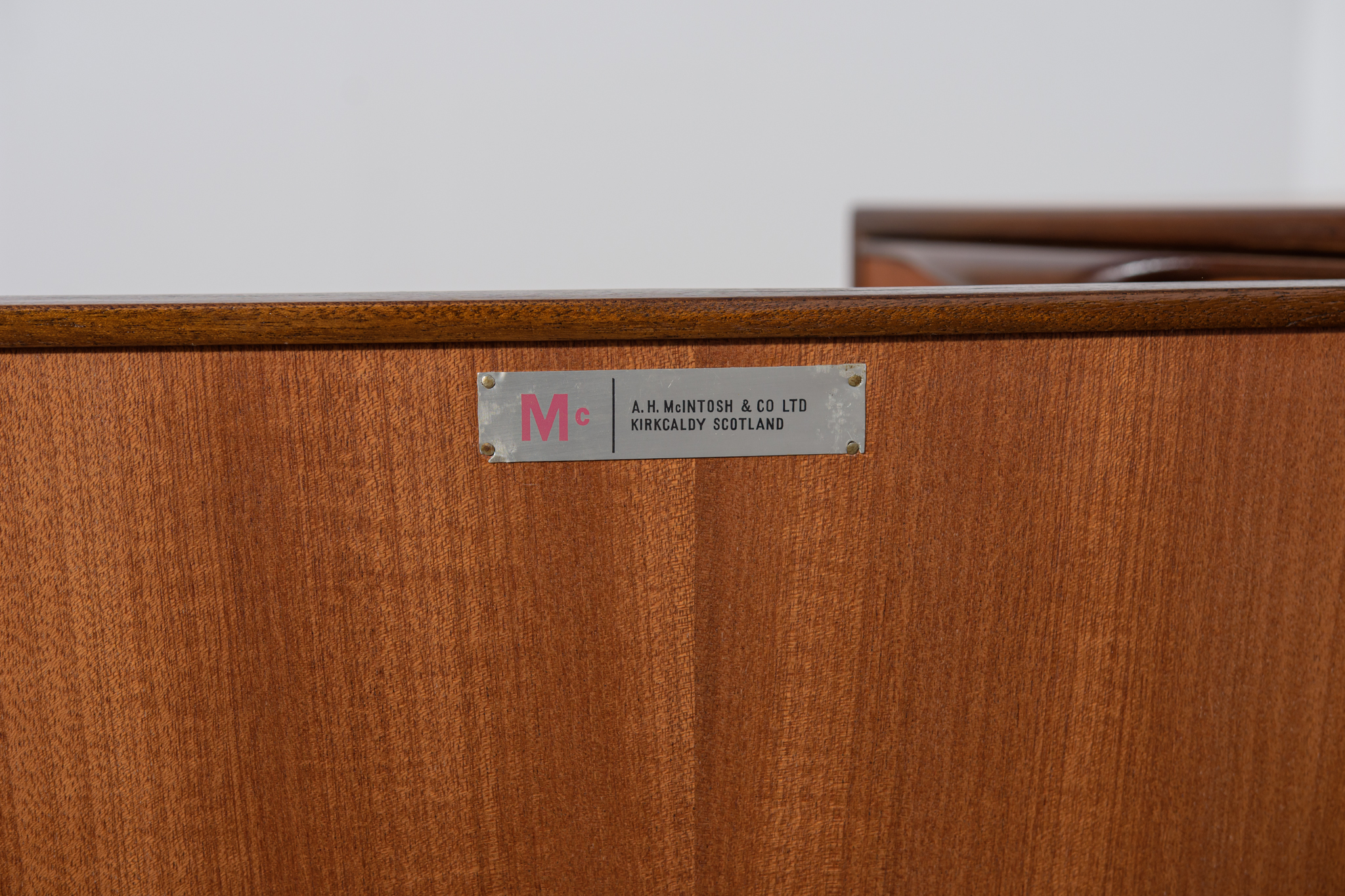 Sideboard zaprojektowany przez Toma Robertsona, wyprodukowany w latach 60. w brytyjskiej manufakturze McIntosh. Sideboard posiada trzy szuflady oraz szafkę, po prawej stronie znajduje się barek i wysuwany blat. Komoda wyprodukowana z drewna teakowego z wyprofilowanymi uchwytami. Mebel jest po kompleksowej renowacji stolarskiej. Został oczyszczony ze starej powierzchni, wykończony wysokogatunkowym olejem duński.
