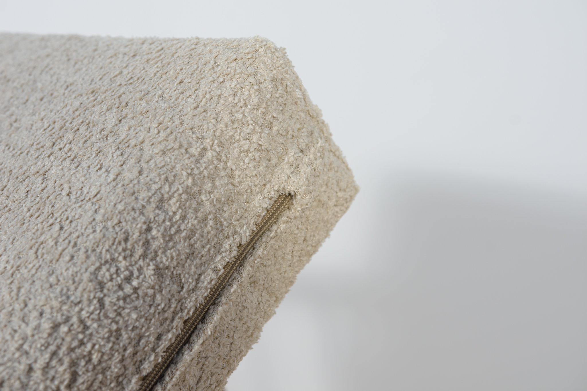 Para foteli typu Model 5825 wyprodukowanych w latach 60. Fotele o unikatowej skandynawskiej formie. Fotele przeszły profesjonalną renowację stolarsko -tapicerską. Drewno bukowe zostało oczyszczone, pomalowane bejcą w kolorze dębu, wykończone mocnym lakierem. Poduszki wymienione na nowe, obite tkaniną typu boucle, w kolorze kremowym.
