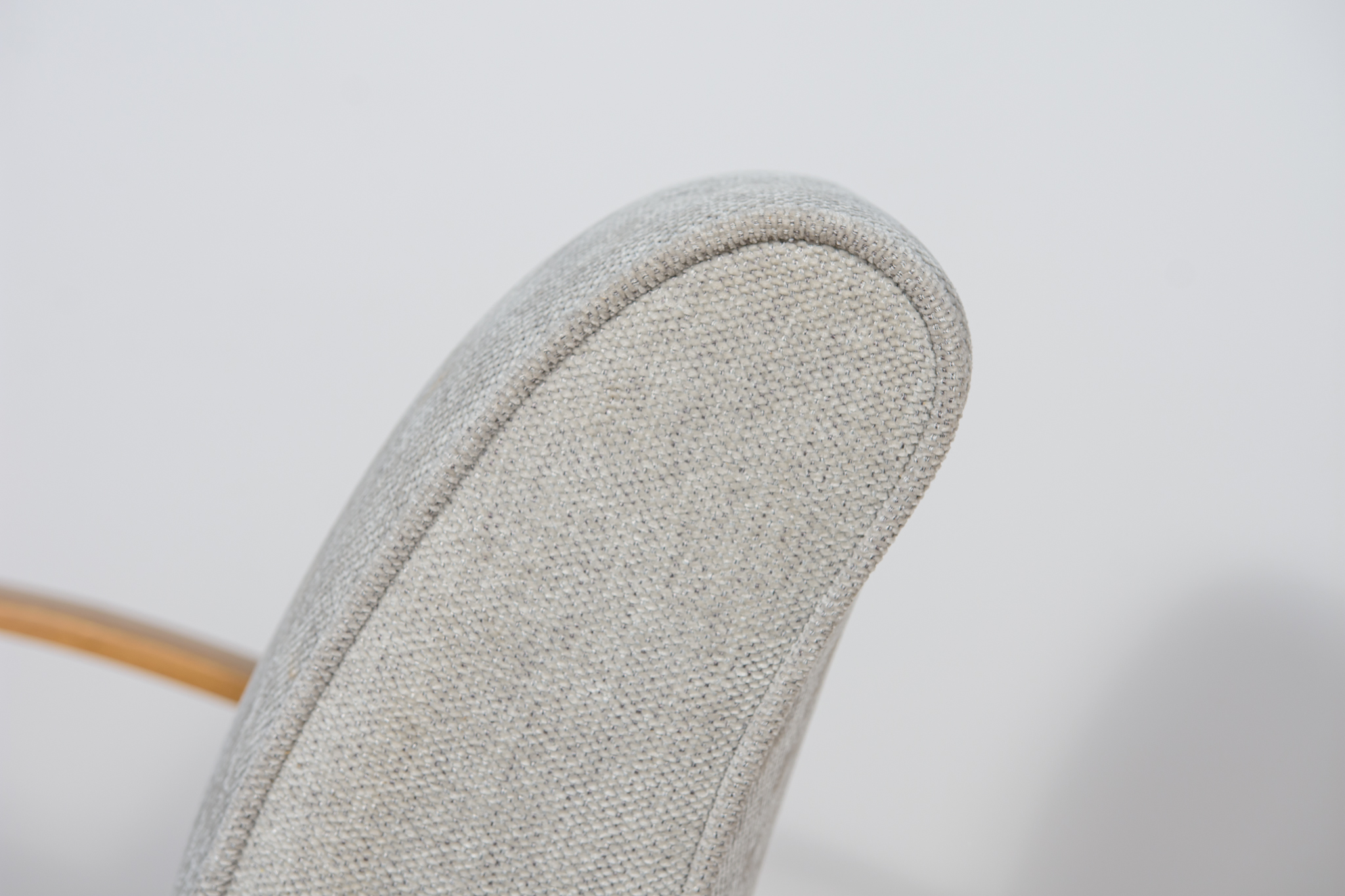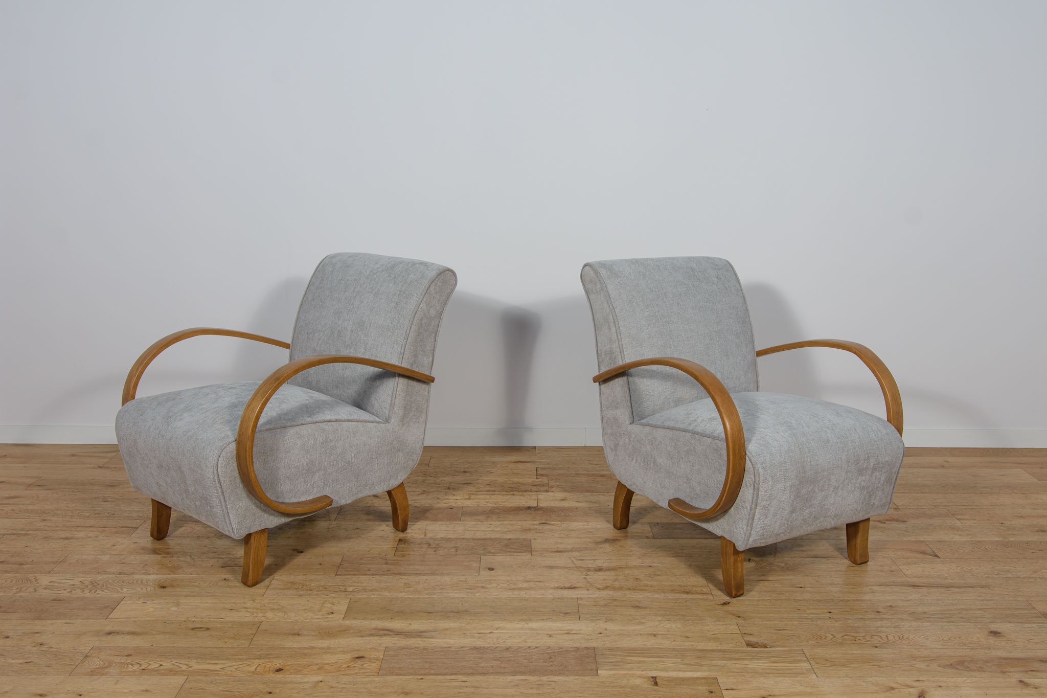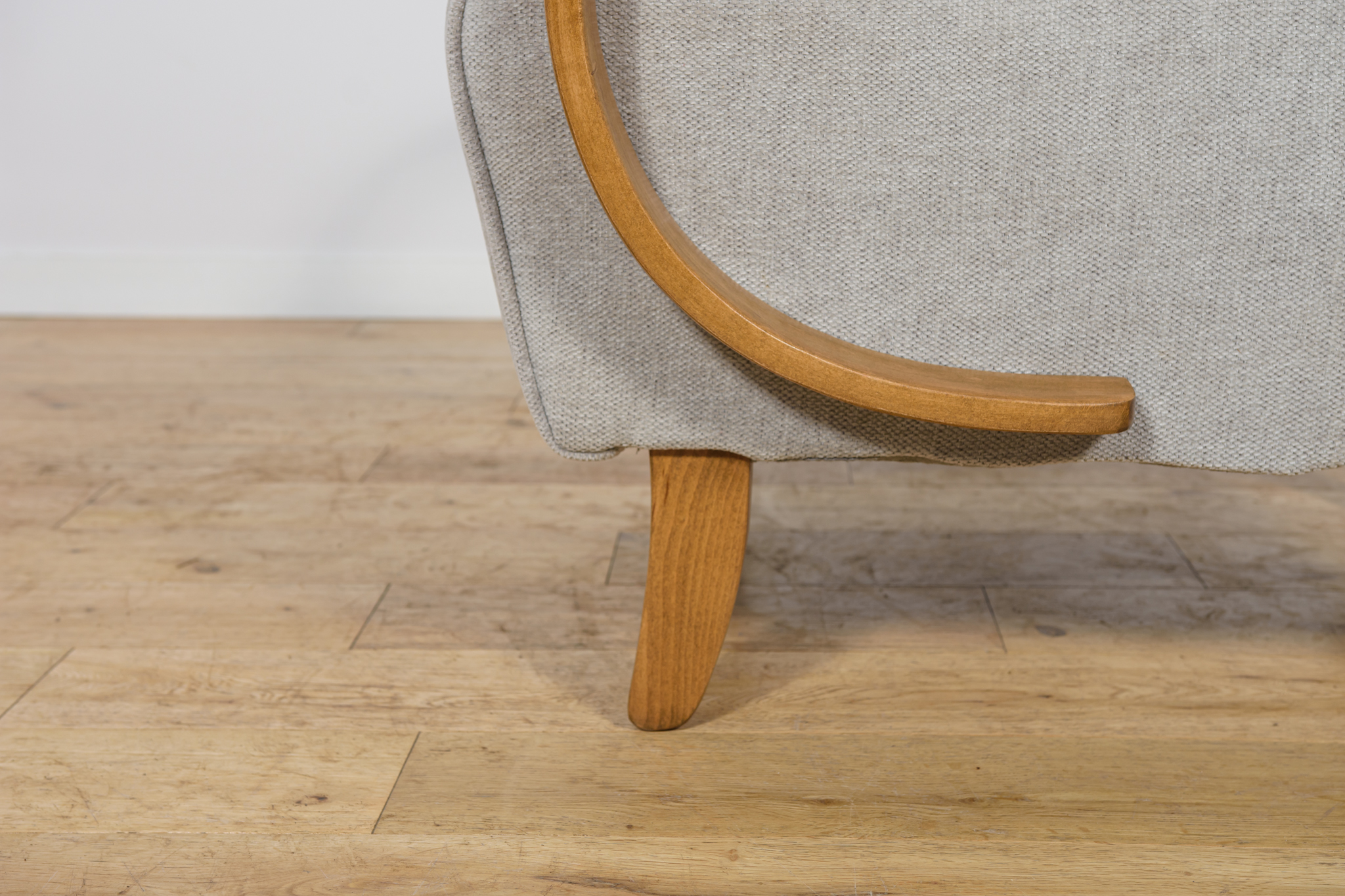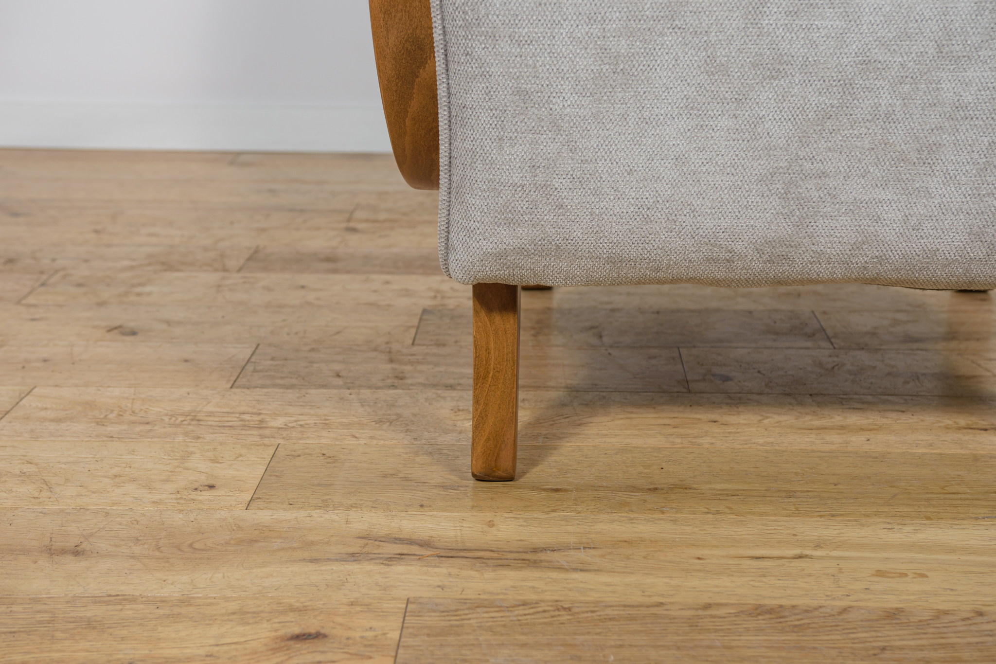 Para foteli Model H-410 projektu Jindřicha Halabali pochodzi z lat 30. Mebel został wykonany w fabryce UP Zavody w Czechosłowacji. Do jego produkcji wykorzystano opracowaną przez firmę Thonet metodę gięcia drewna. Fotele przeszły profesjonalną renowację tapicerską i stolarską. Renowacja tapicerska została wykonana tradycyjną metodą rzemieślniczą, z zastosowaniem sprężyn i pasów. Fotele zostały obite wysokogatunkową tkaniną w kolorze jasno szarym. Elementy drewniane zostały oczyszczone ze starej powierzchni, barwione bejcą w kolorze dębu, wykończone mocnym półmatowym lakierem.