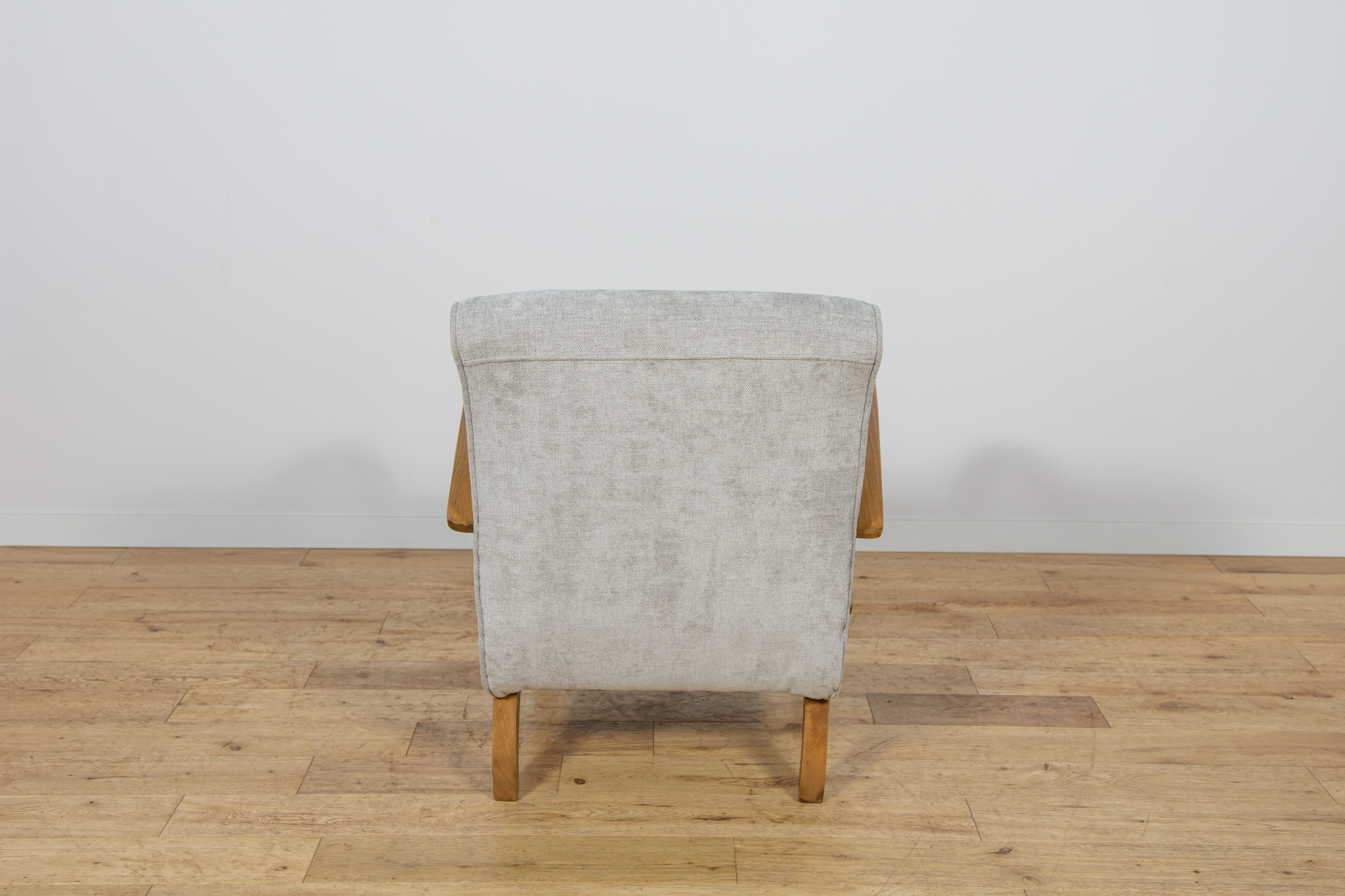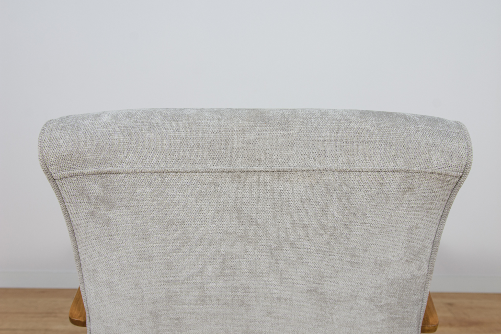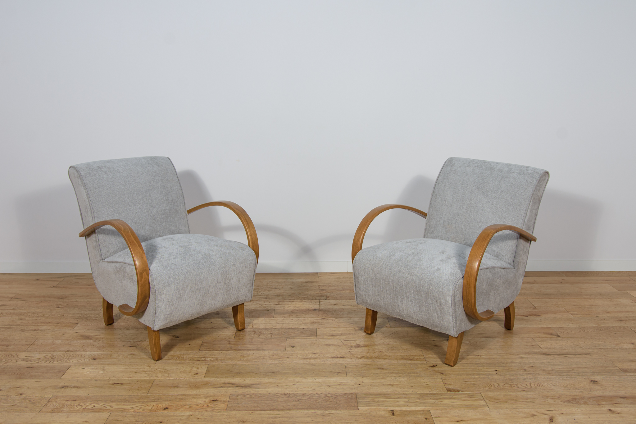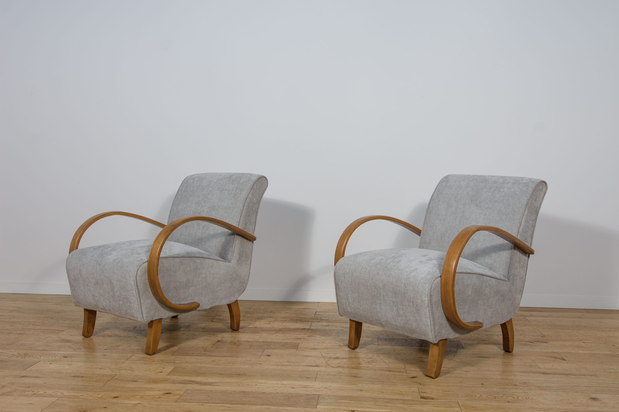 Para foteli Model H-410 projektu Jindřicha Halabali pochodzi z lat 30. Mebel został wykonany w fabryce UP Zavody w Czechosłowacji. Do jego produkcji wykorzystano opracowaną przez firmę Thonet metodę gięcia drewna. Fotele przeszły profesjonalną renowację tapicerską i stolarską. Renowacja tapicerska została wykonana tradycyjną metodą rzemieślniczą, z zastosowaniem sprężyn i pasów. Fotele zostały obite wysokogatunkową tkaniną w kolorze jasno szarym. Elementy drewniane zostały oczyszczone ze starej powierzchni, barwione bejcą w kolorze dębu, wykończone mocnym półmatowym lakierem.
