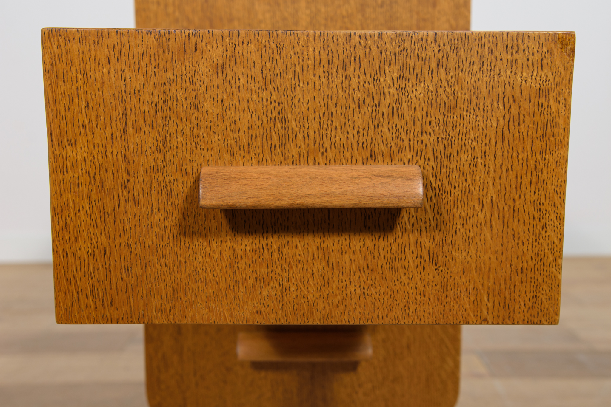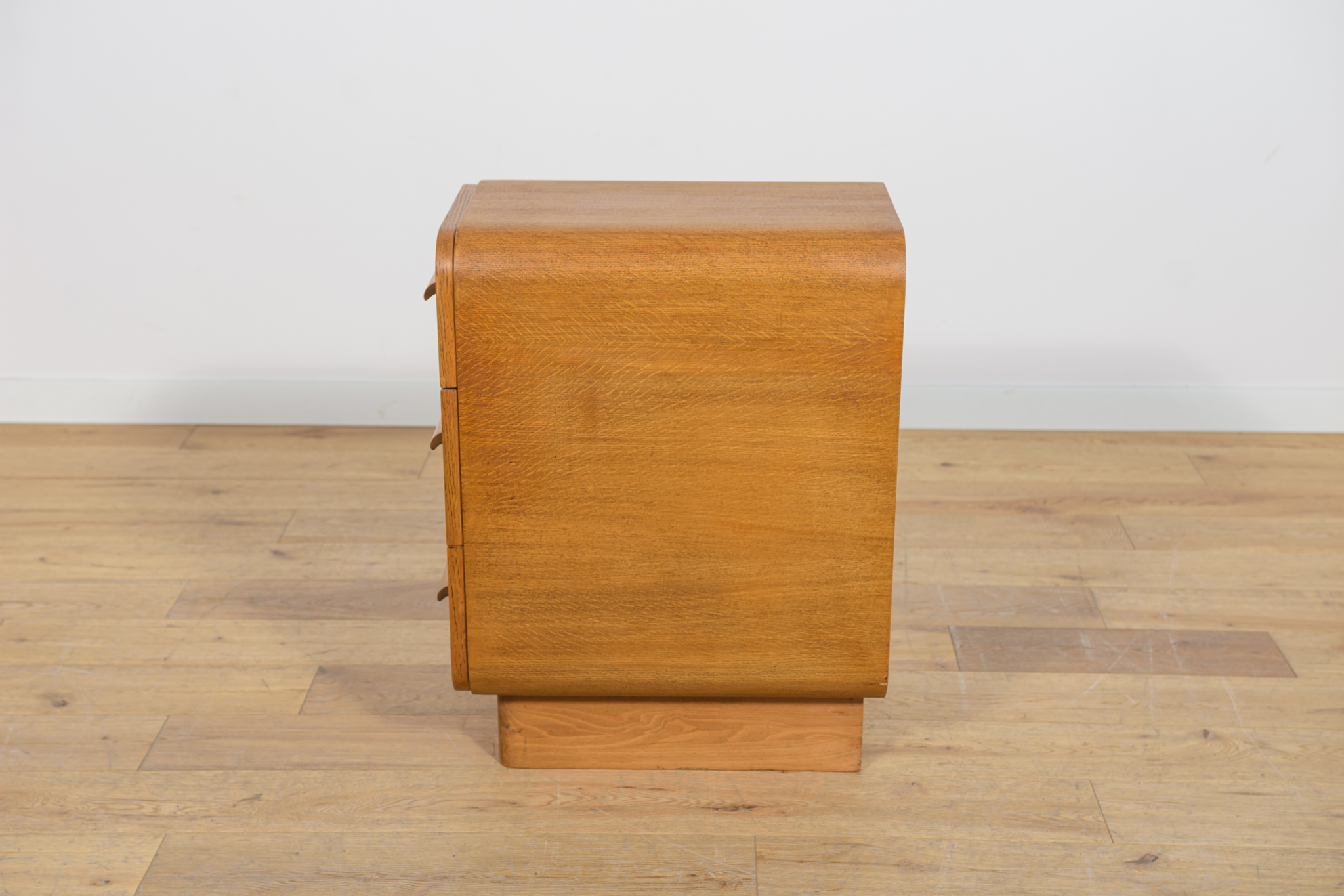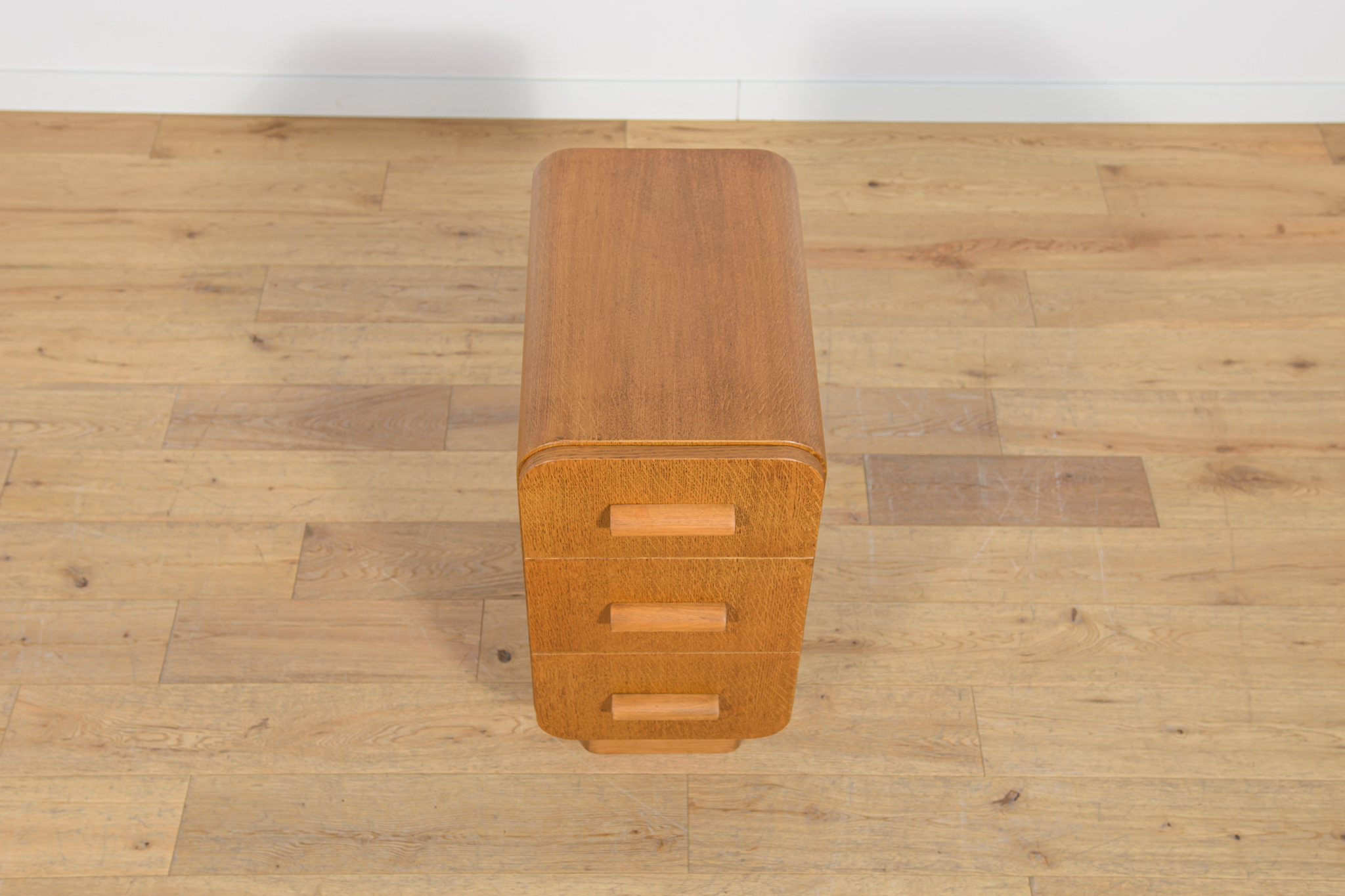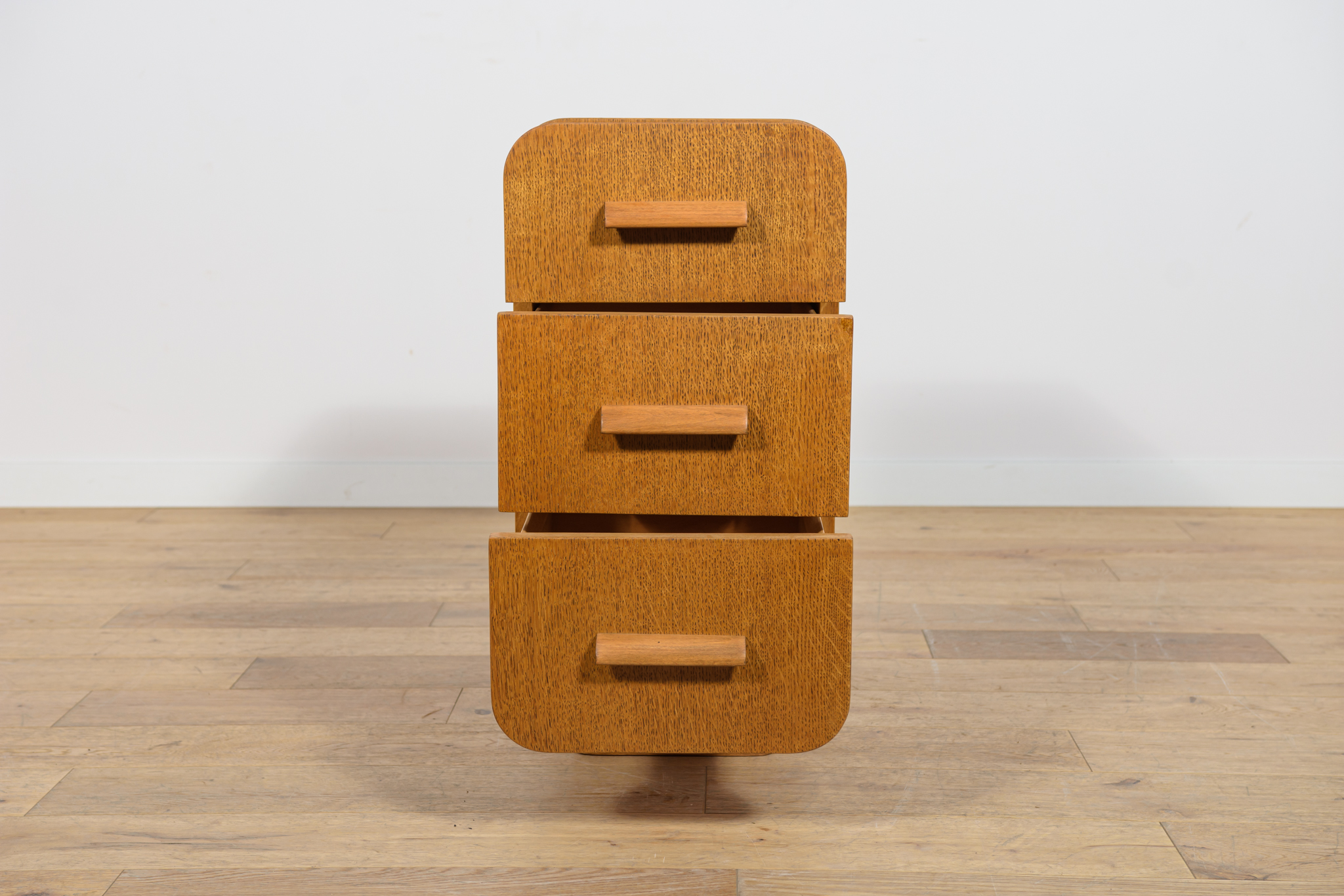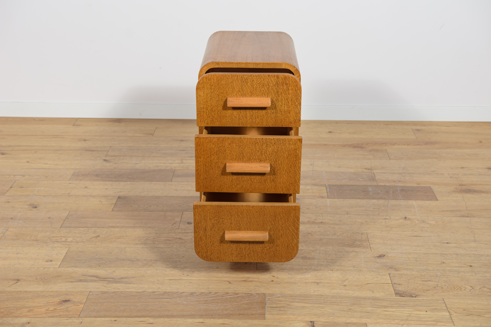 Para szafek nocnych w stylu Art Deco wyprodukowana w czechosłowackiej manufakturze Former w latach 50 ubiegłego wieku. Szafki posiadają zaokrąglone kształty, nadające mu unikalnego charakteru. Szuflady posiadają wyprofilowane, zaokrąglone dna. Mebel z drewna dębowego i bukowego po kompleksowej renowacji, został oczyszczony ze starej powłoki, wykończony woskiem o barwie dębu średniego.