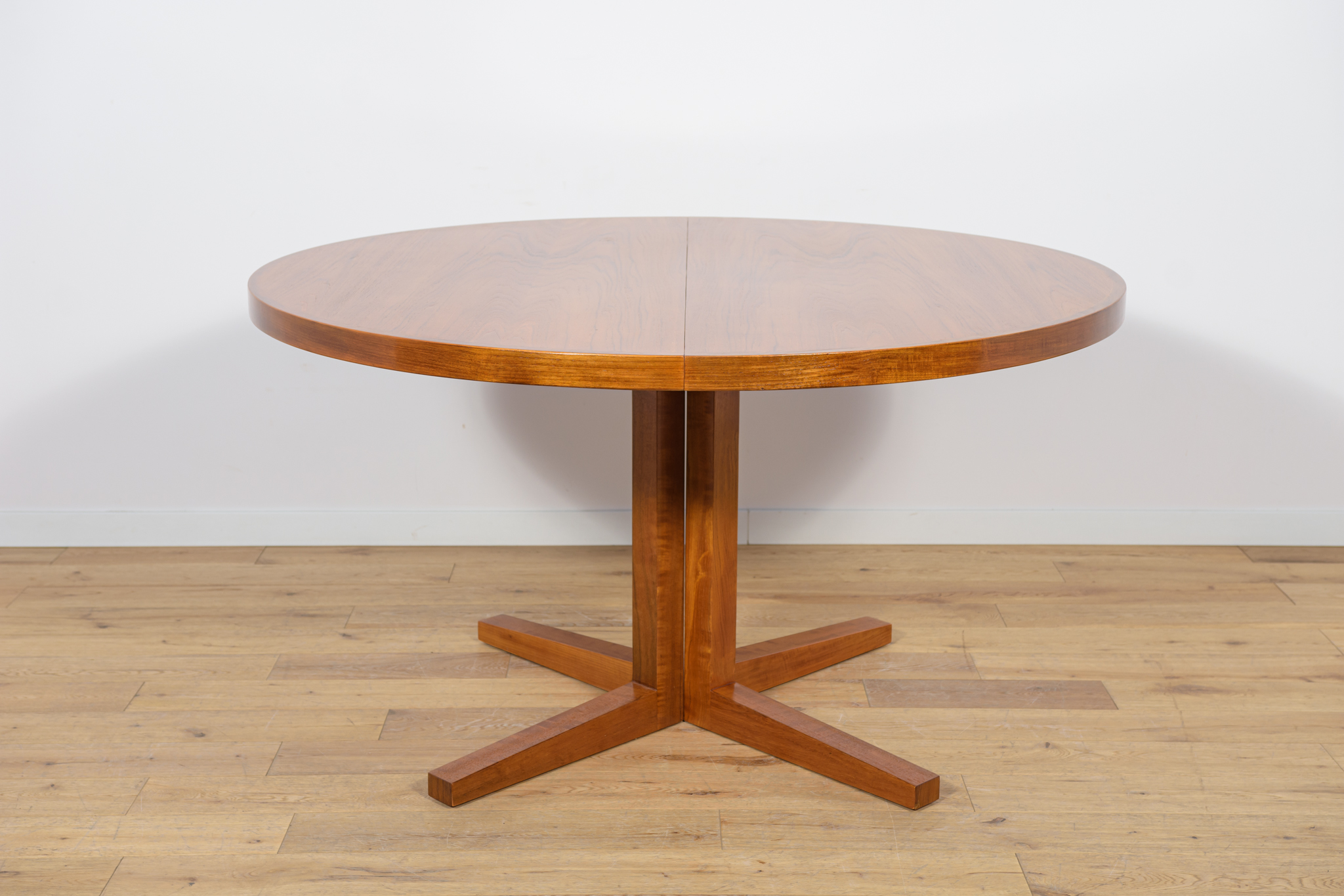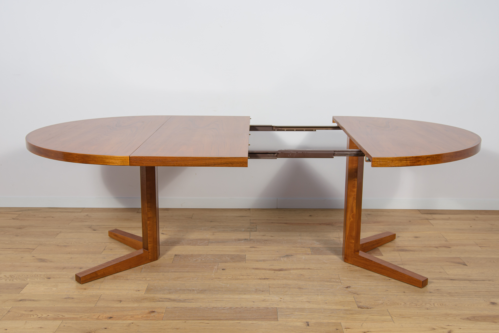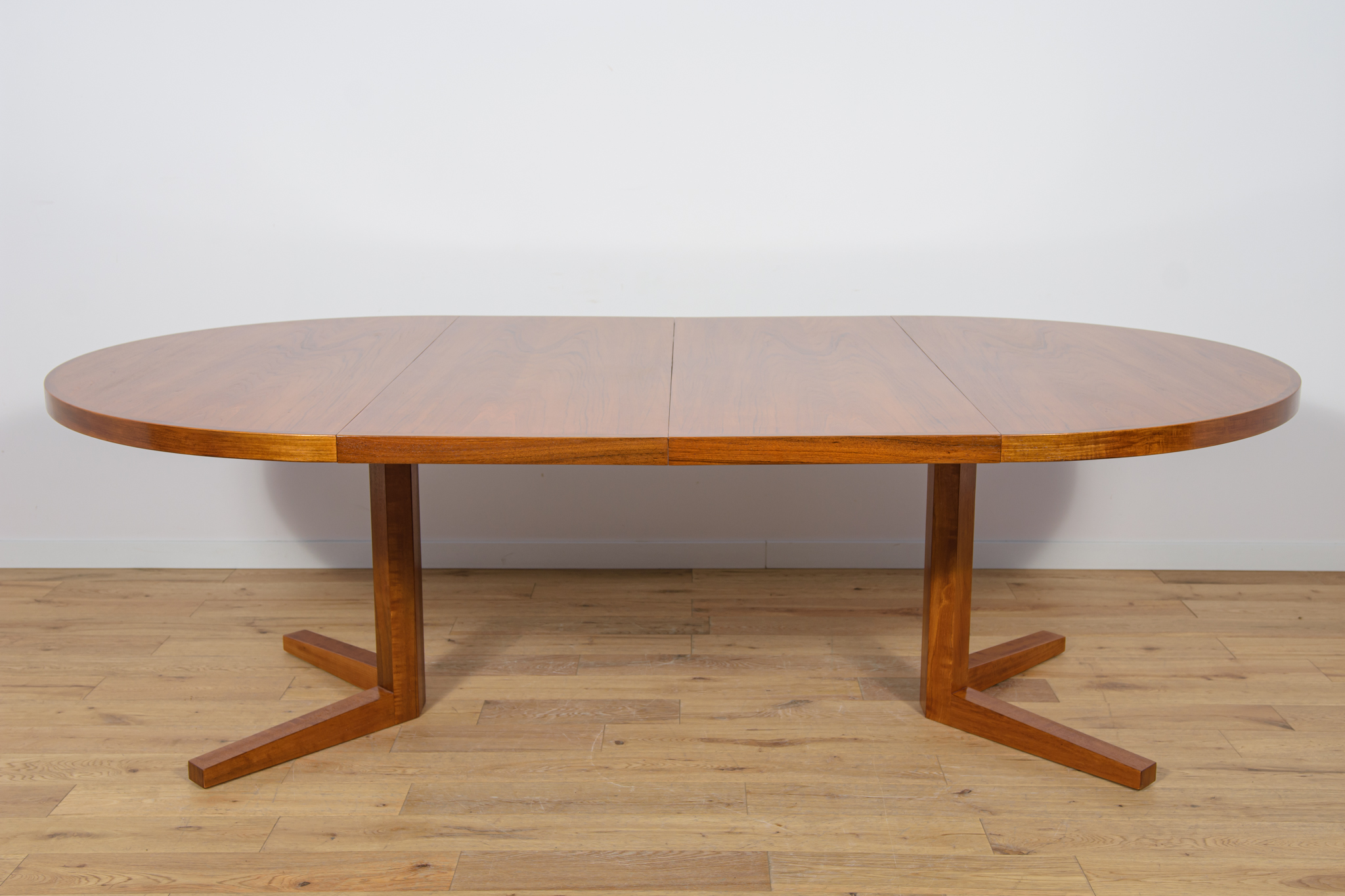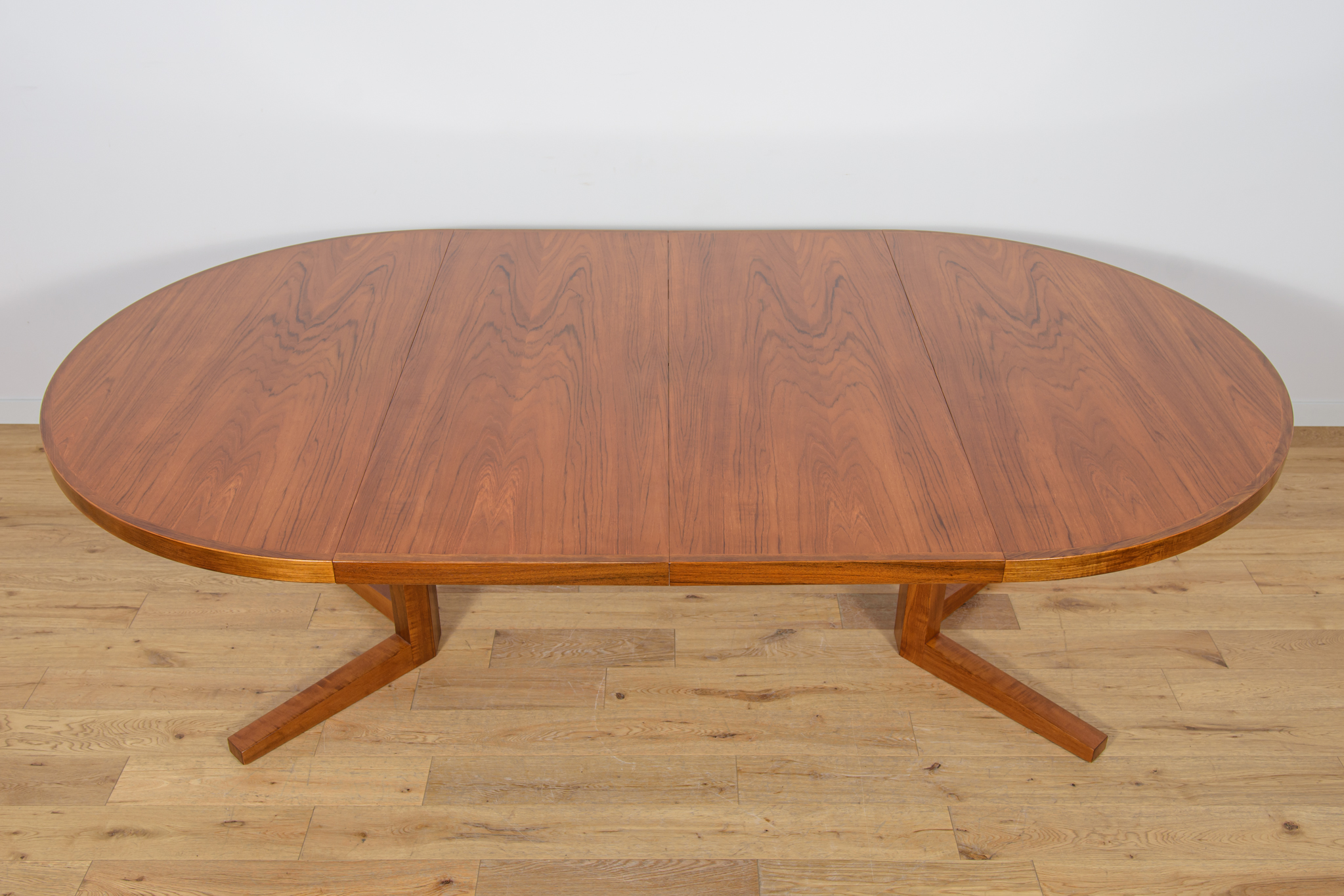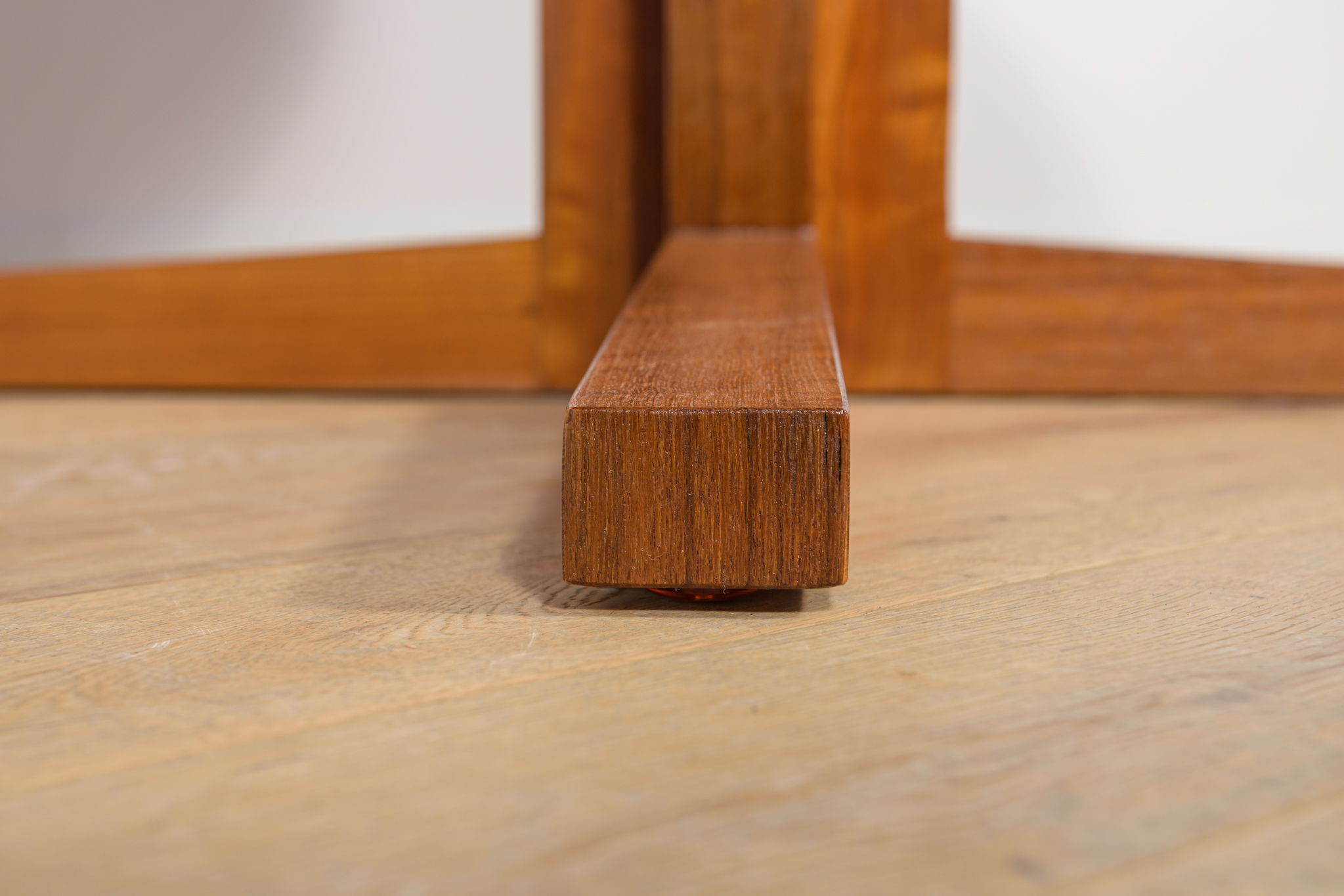 Stół z drewna teak zaprojektowany przez Johna Mortensena dla duńskiej manufaktury Heltborg Mobler w latach 60. Stół charakteryzuje się unikatowym rozwiązaniem podstawy blatu i wzmacnianymi obrzeżami. Długość blatu możliwa do zwiększenia dzięki dwóm przedłużeniom. Średnica początkowa wynosi 130 cm, możliwa do zwiększenia do 180 cm lub 230 cm. Stół jest po renowacji stolarskiej. Oczyszczony ze starej powłoki, wykończony wysokogatunkowym olejem duńskim.