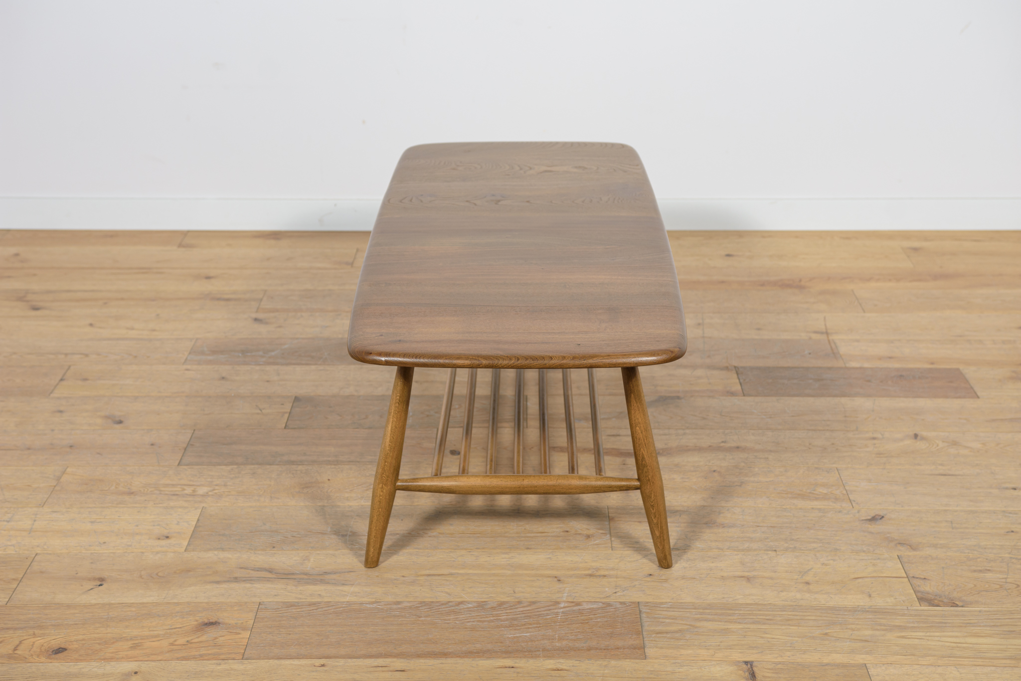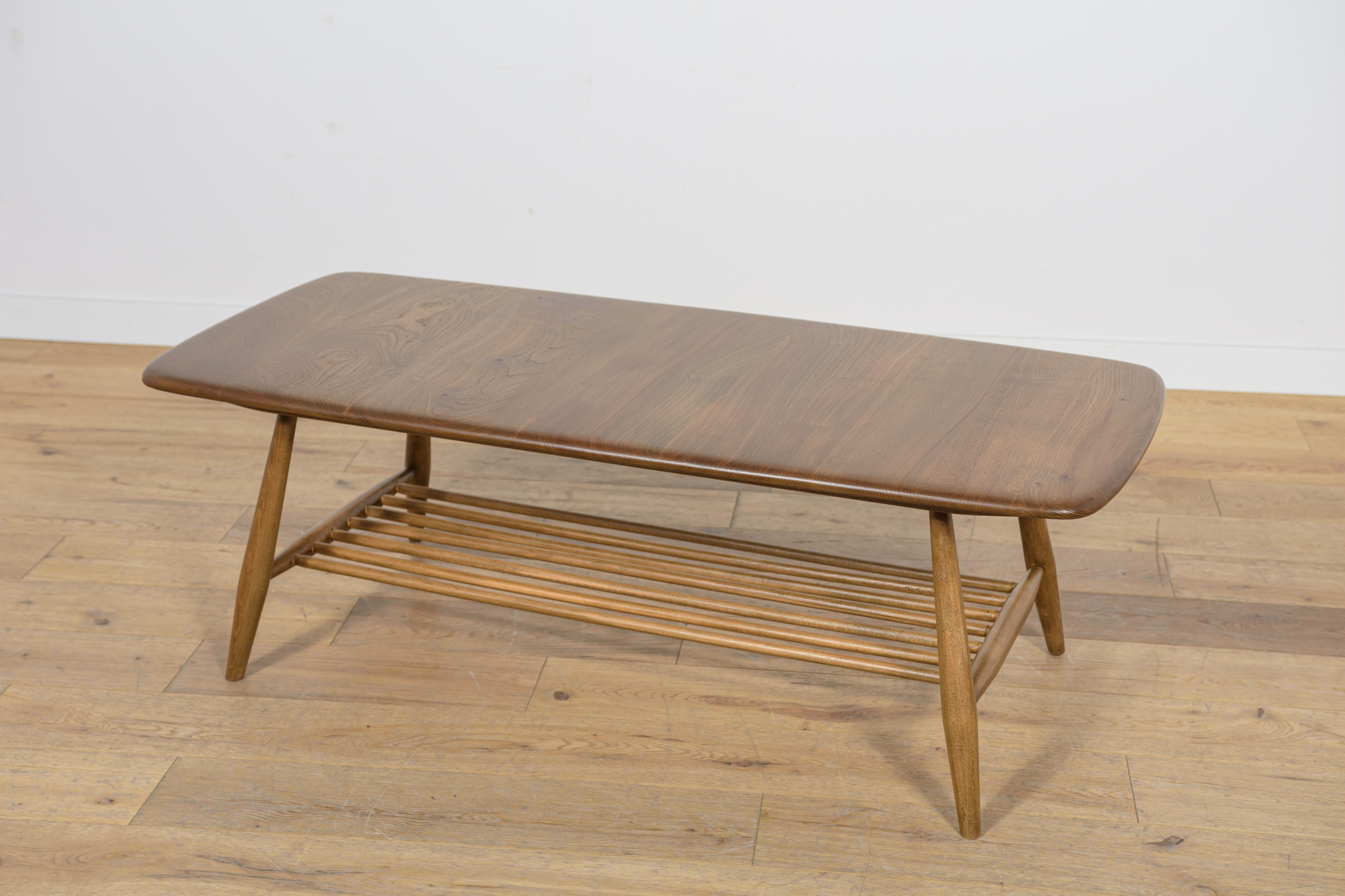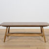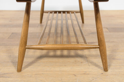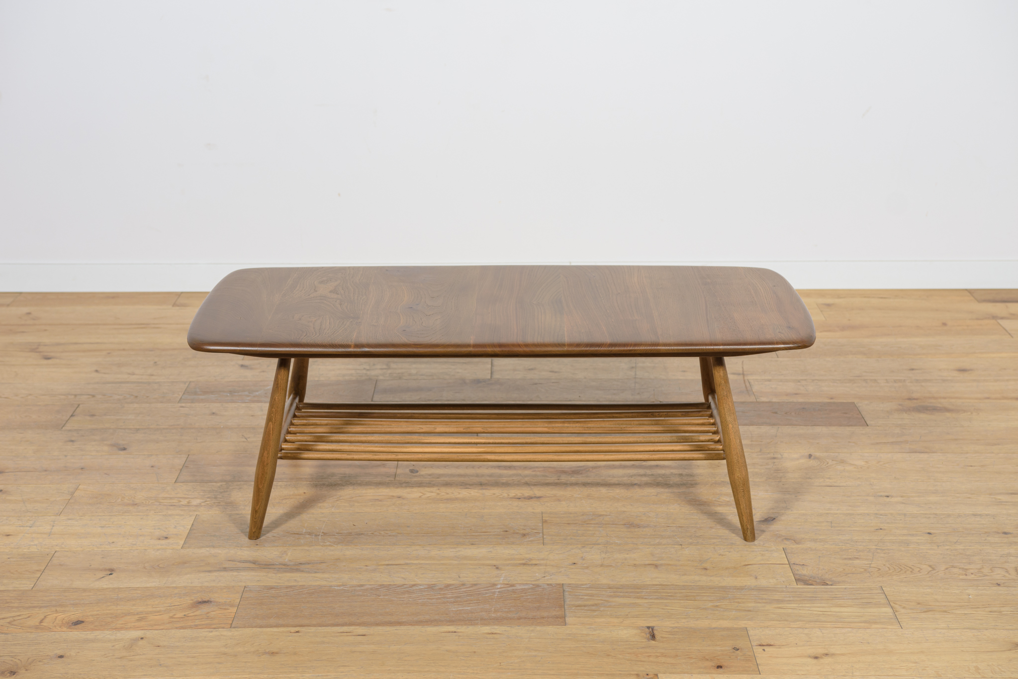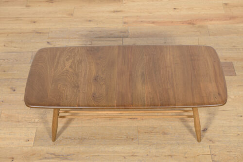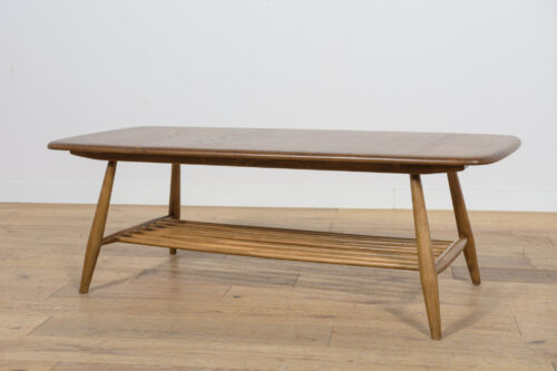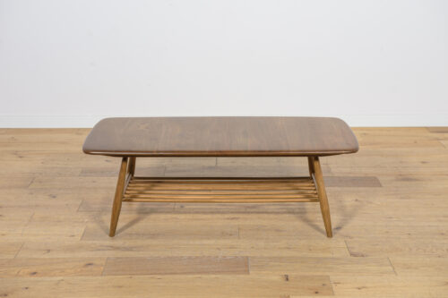 Stolik kawowy model 459 zaprojektowany przez włoskiego projektanta Luciana Ercolaniego około 1960 roku dla brytyjskiej manufaktury Ercol z High Wycombe w Anglii. Meble Ercol są synonimem dobrego projektu, wysokiej jakości materiałów, kunsztu i stworzone zostały z myślą o długowieczności. Stolik kawowy wykonany z drewna wiązu i buku. Blat wykonany z litego wiązu. Stolik składa się z górnego blatu i dolnej części pokrytej raszkami na czasopisma i książki. Mebel po gruntownej renowacji, oczyszczony ze starej powierzchni, barwiony bejcą orzechową, wykończony mocnym półmatowym lakierem.