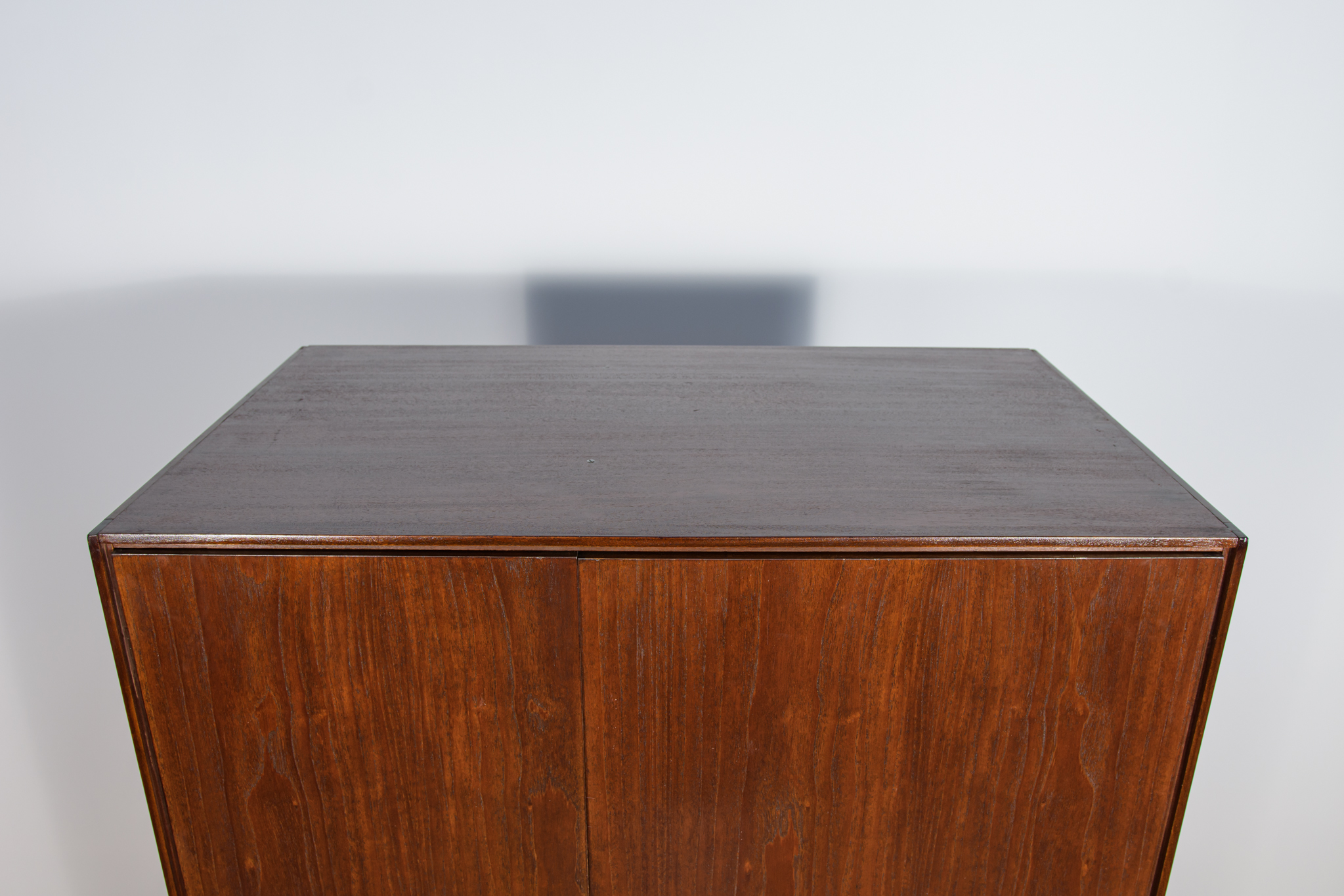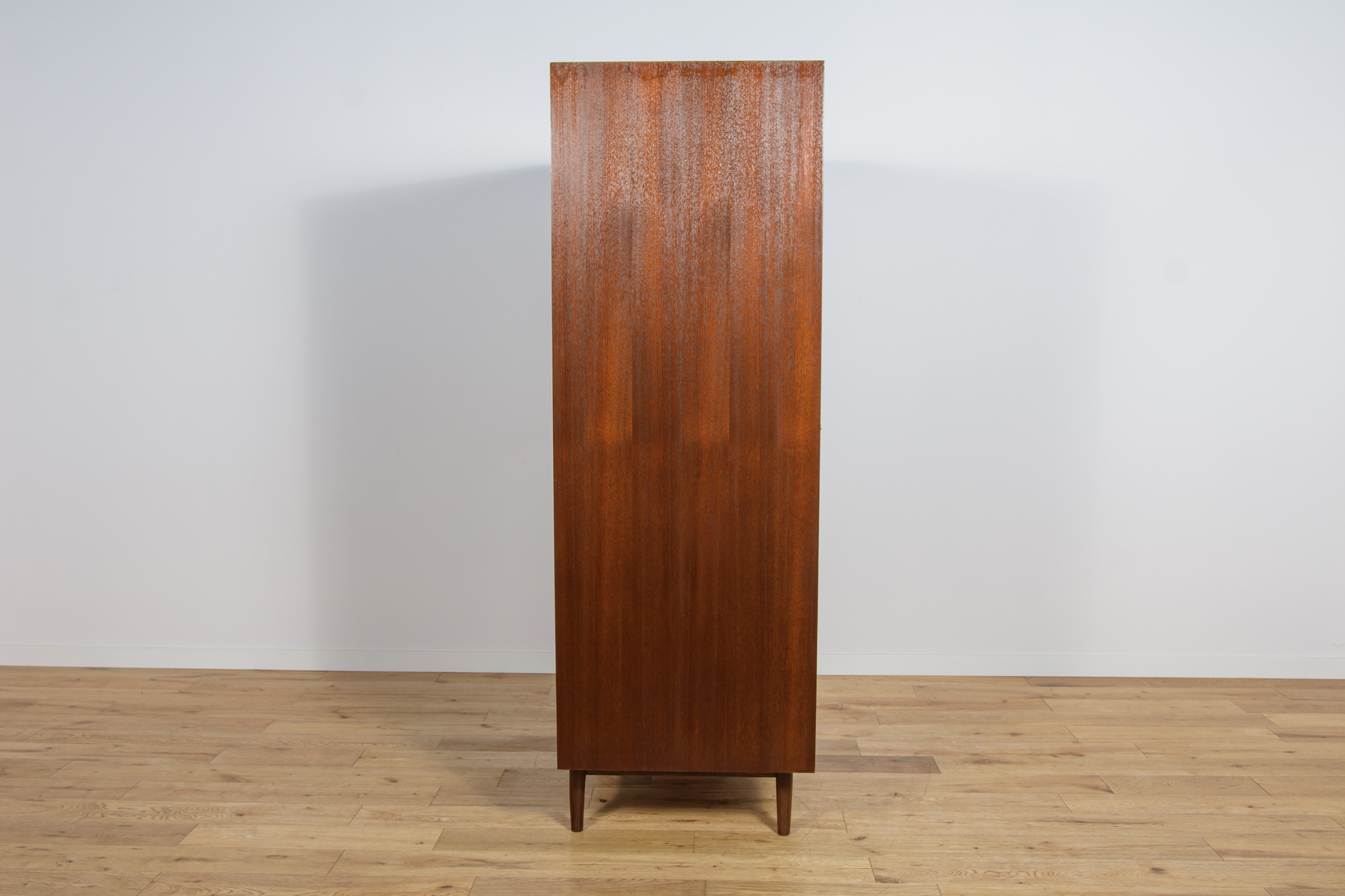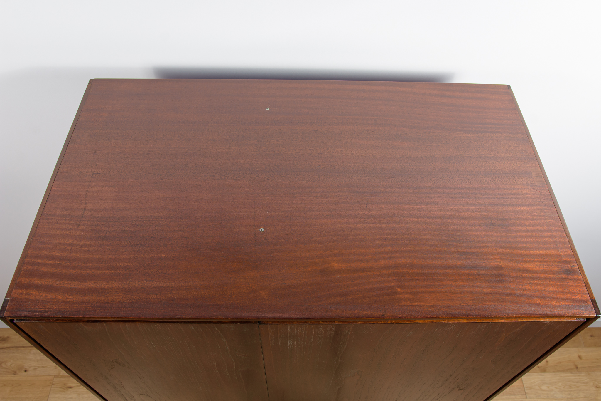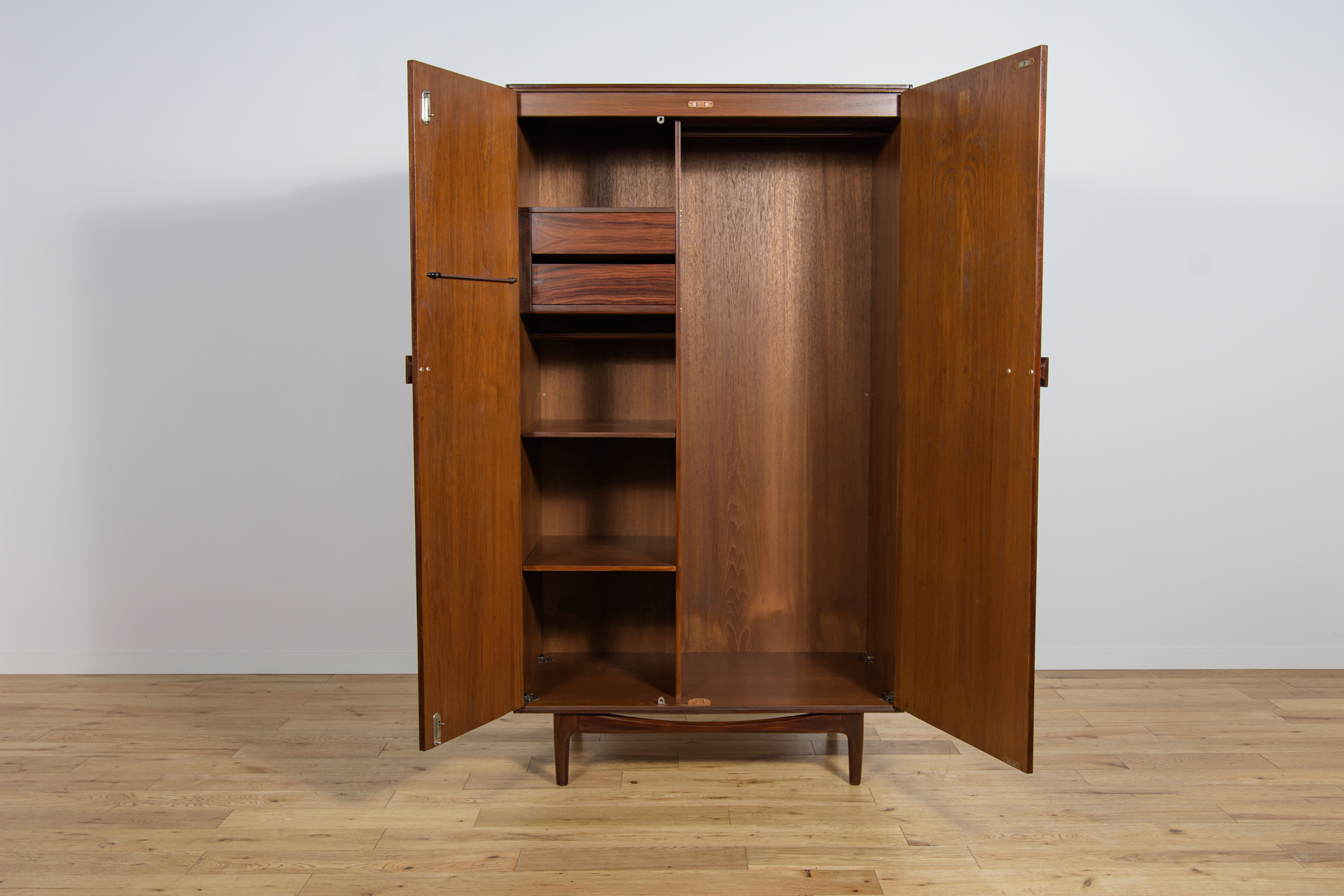 Dwudrzwiowa szafa zaprojektowany przez duńskiego projektanta Ib Kofod-Larsen, wyprodukowany w latach 60. w brytyjskiej manufakturze G-Plan. W szafie po lewej znajdują się półki i dwie szuflady, po prawej reling. Mebel został wykonany z drewna tekowego, uchwyty i fronty szuflad wykonane z palisandru. Szafa jest po kompleksowej renowacji stolarskiej. Mebel została oczyszczona ze starej powłoki, barwiony bejcą palisandrową, wykończony wysokogatunkowym duńskim olejem. Szafa jest sygnowana.