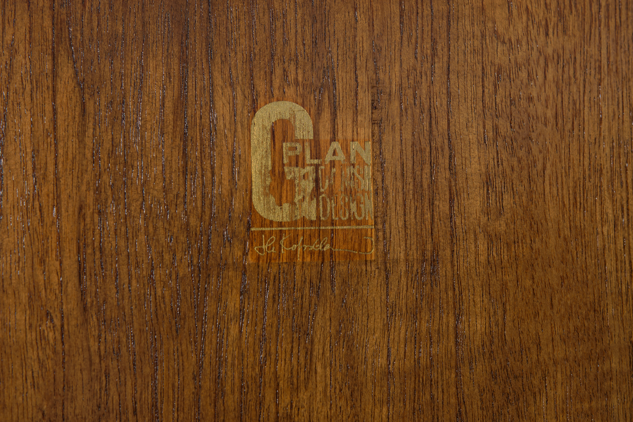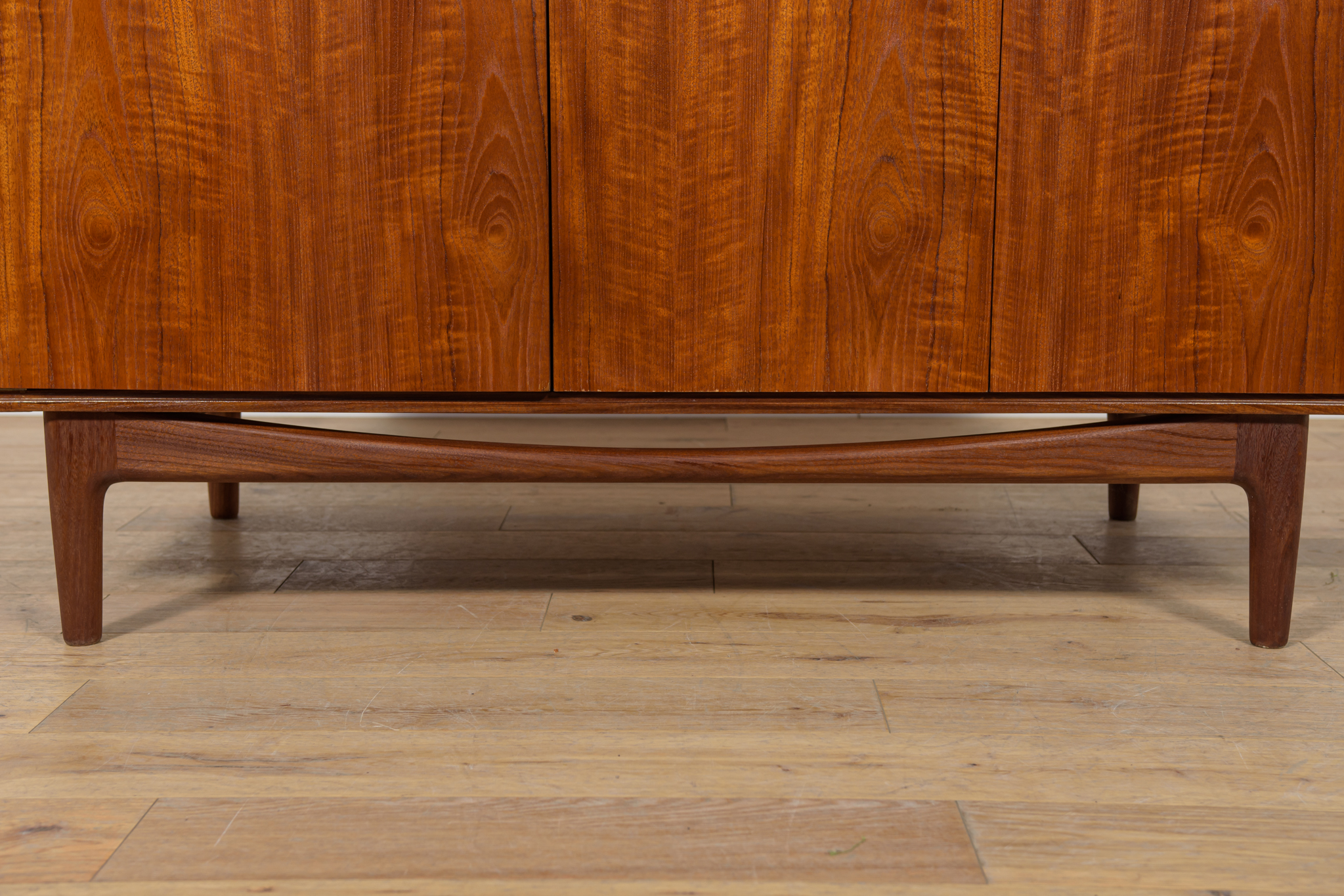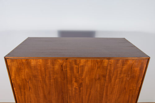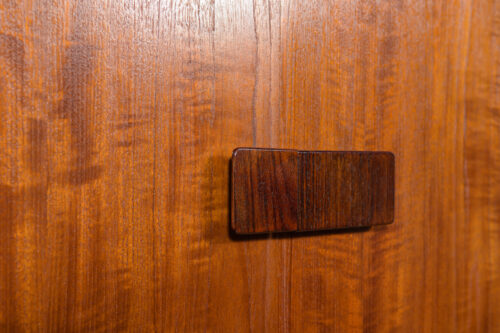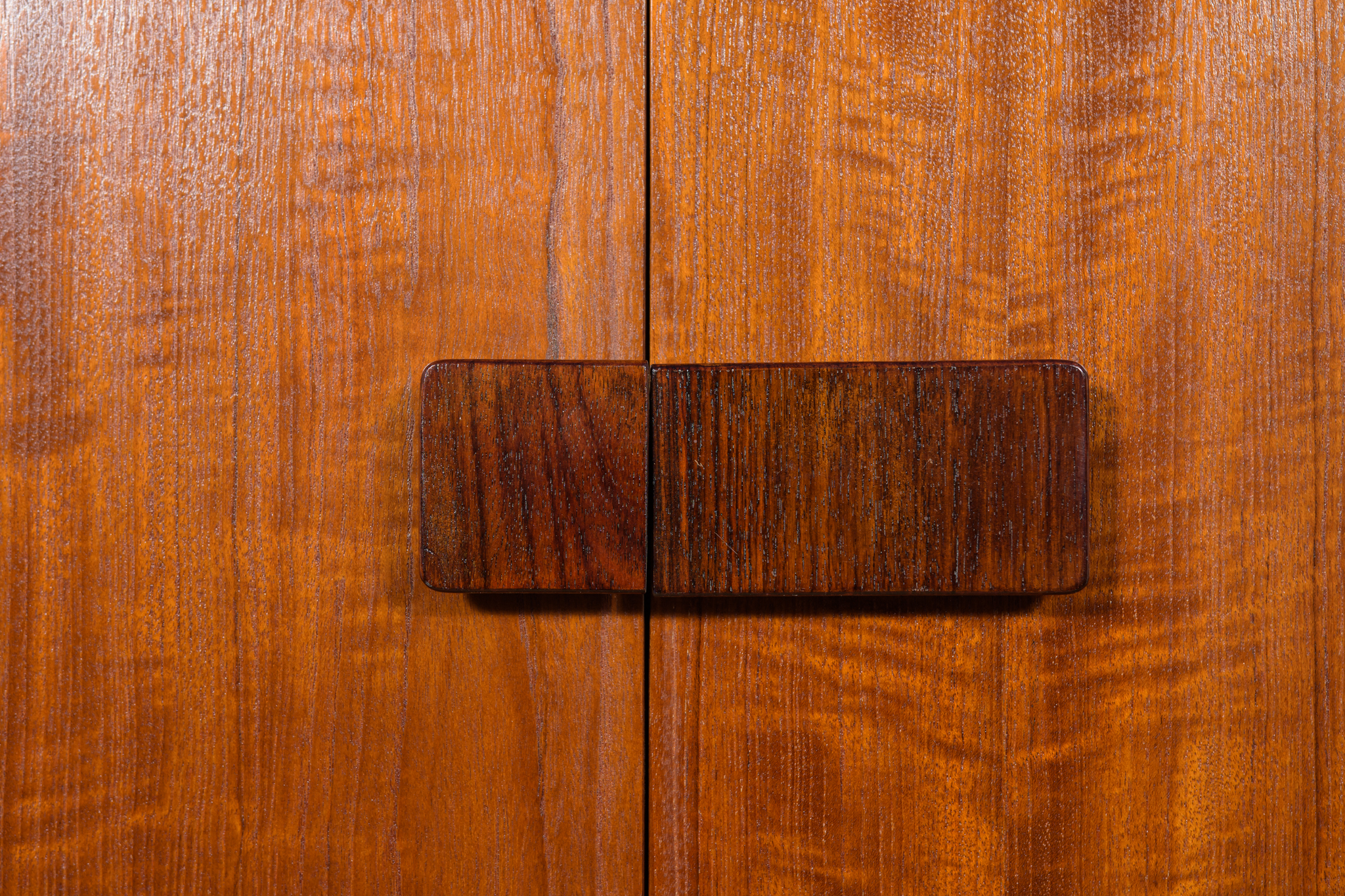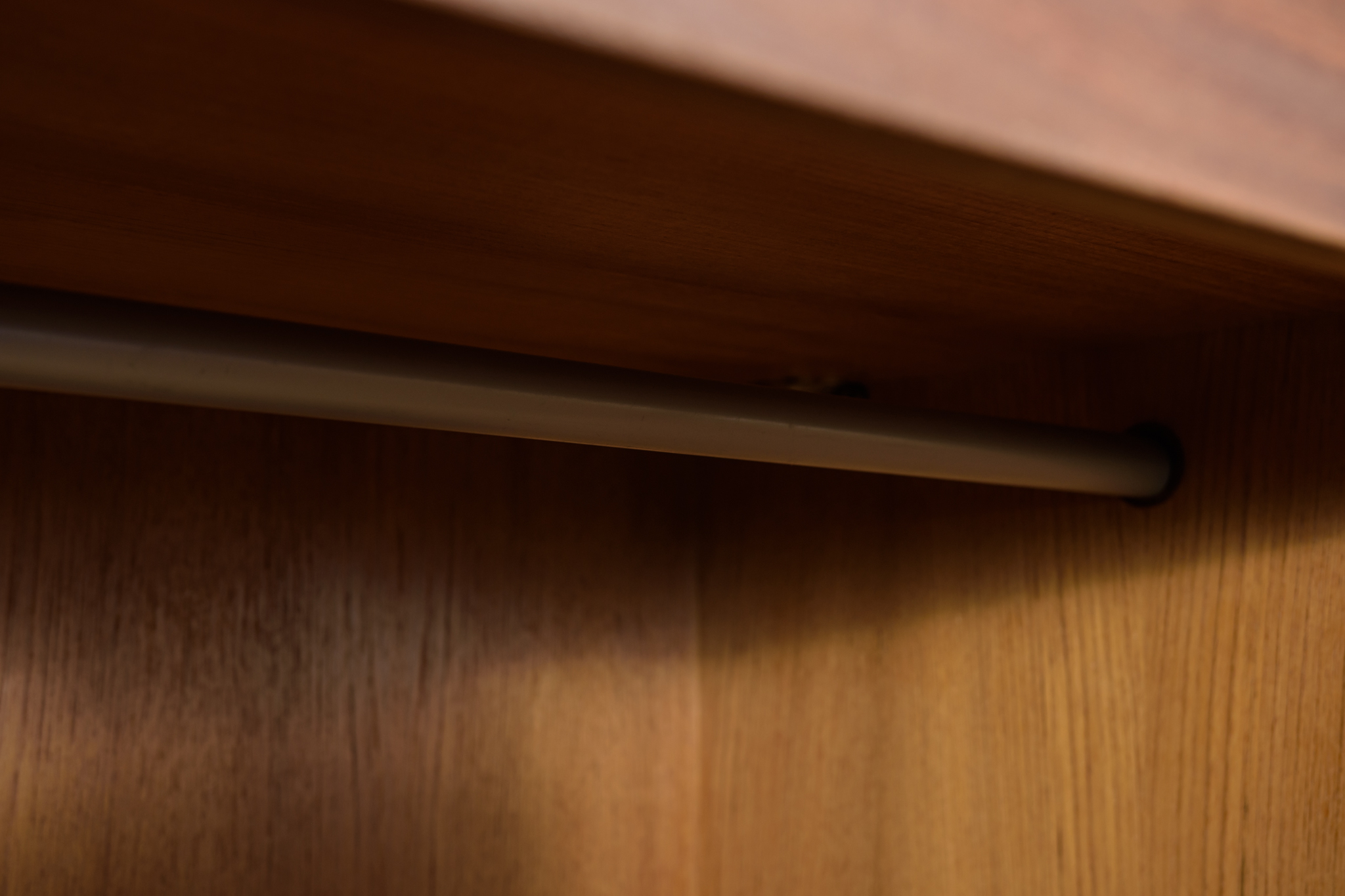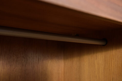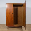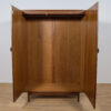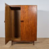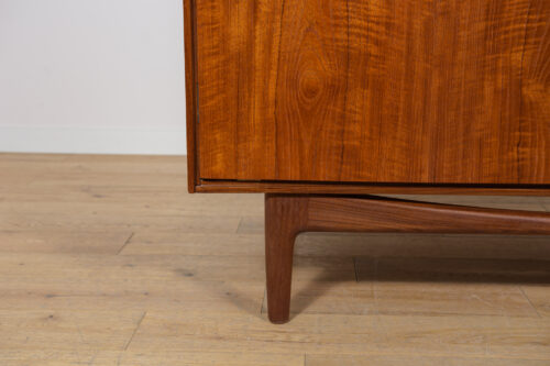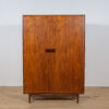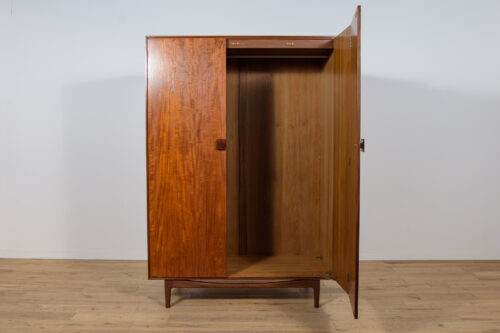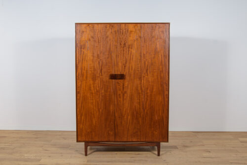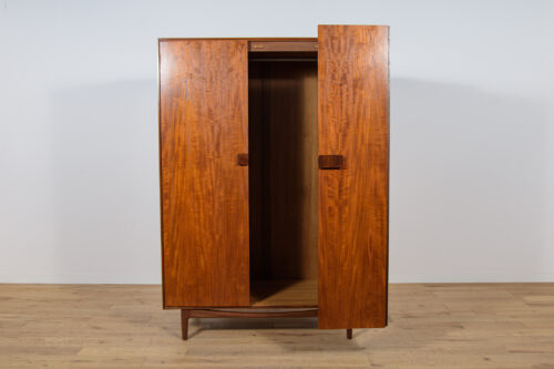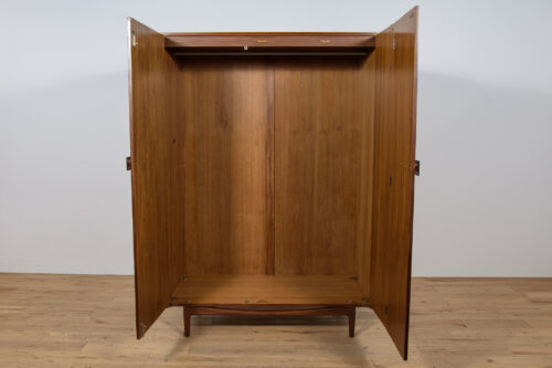 Trzydrzwiowa szafa zaprojektowany przez duńskiego projektanta Ib Kofod-Larsen, wyprodukowany w latach 60. w brytyjskiej manufakturze G-Plan. Mebel został wykonany z drewna tekowego, uchwyty wykonane z palisandru. Szafa posiada uchwyty z drewna palisandrowego, zapewniają piękny kontrast z drewnem tekowym. Seria ta została zaprojektowana w 1961 roku i wyprodukowana w latach 1963-67 była gamą premium, charakteryzowała się wysoką jakością i ceną. Elegancji szafie dodaje również wyprofilowana podstawa z nogami. W środku znajduje się reling. Szafa jest po kompleksowej renowacji stolarskiej. Mebel została oczyszczony ze starej powłoki, wykończony wysokogatunkowym duńskim olejem.